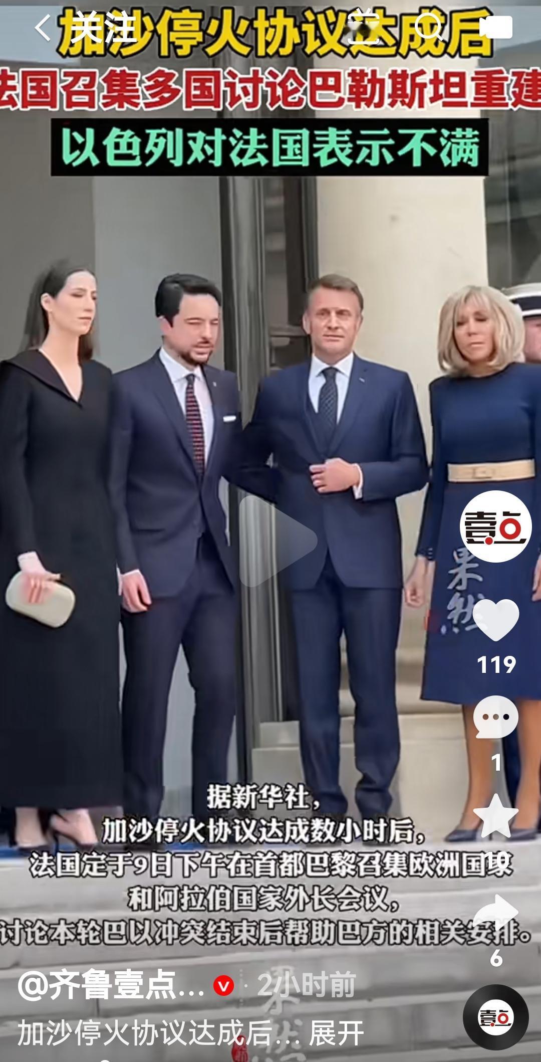 加沙停火,法国找到发财机会了 根据媒体报道,在加沙停火数小时,法国就在首都巴黎召开了欧盟和阿拉伯国家外长会议讨论巴勒斯坦和平后重建和安全问题 参会国家包括埃及,约旦,沙特阿拉伯,卡塔尔,阿拉伯联合酋长国外长,法国,意大利,德国,西班牙和英国外长,土耳其和欧盟代表也在参加 你就是瓜分巴勒斯坦重建啊,说的都是关于停火后对巴勒斯坦援助的承诺 实际是把巴勒斯坦的经济全部霸占了,巴勒斯坦停战了,这些国家讨论重建,不是应该争取巴勒斯坦人民的建议吗 这是掠夺者还是一样的套路一样的手段巴勒斯坦国 巴勒斯坦反战 加沙现状 图片来自齐鲁壹点媒体视频