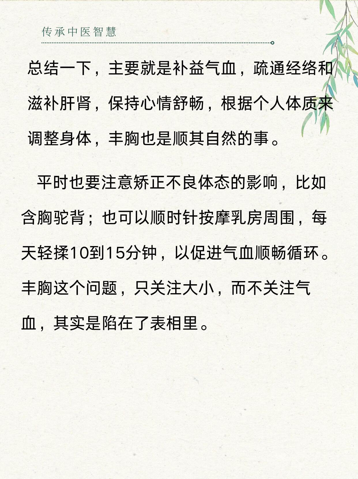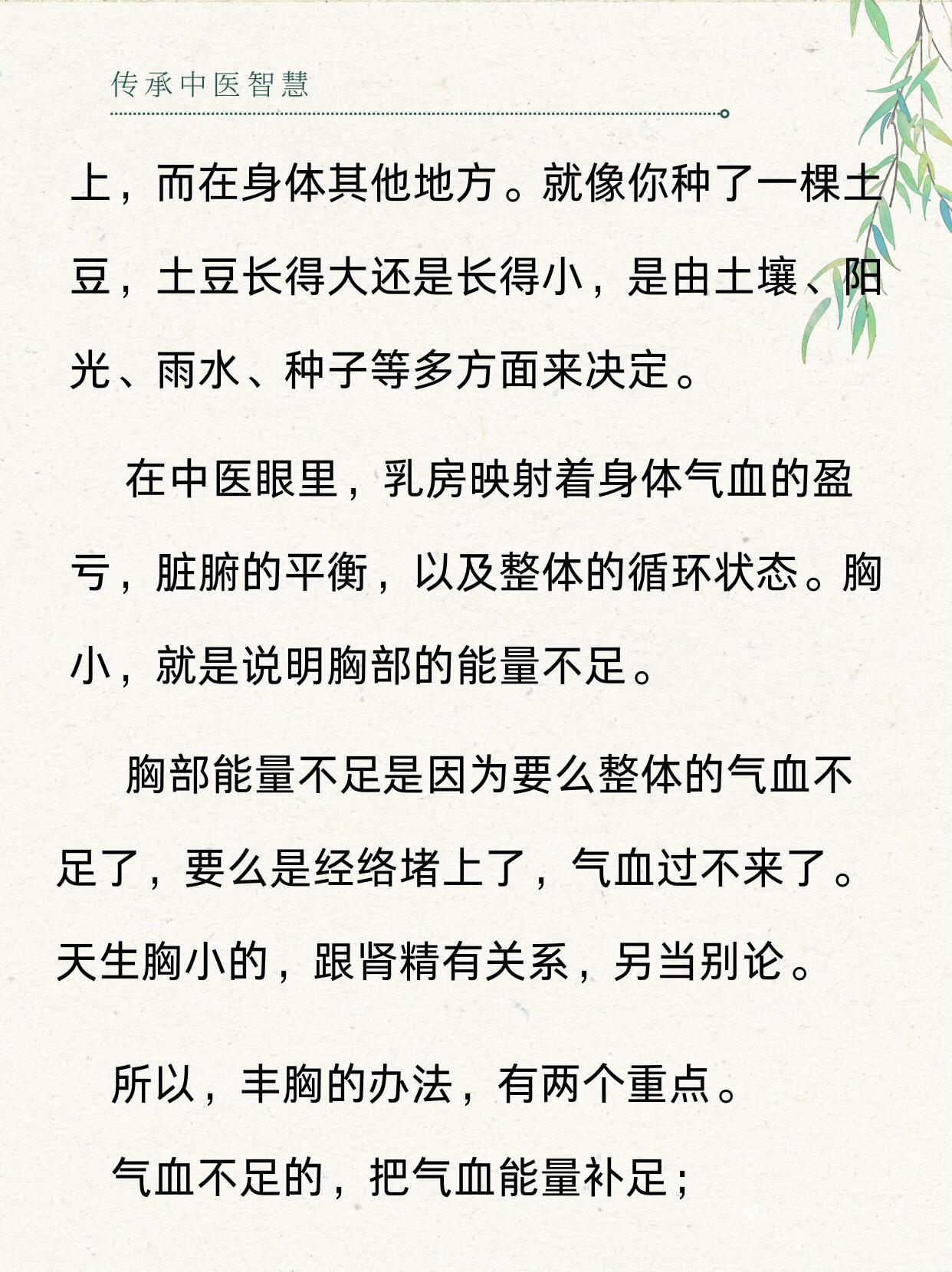 中医谈丰胸中医的智慧,更希望人们能够回到身体的本身,而不是对身体表面的“改变”,当你气血充盈了,内在觉醒了,会发现身体的每个部分,都是完美的。中医养生丰胸健康养生