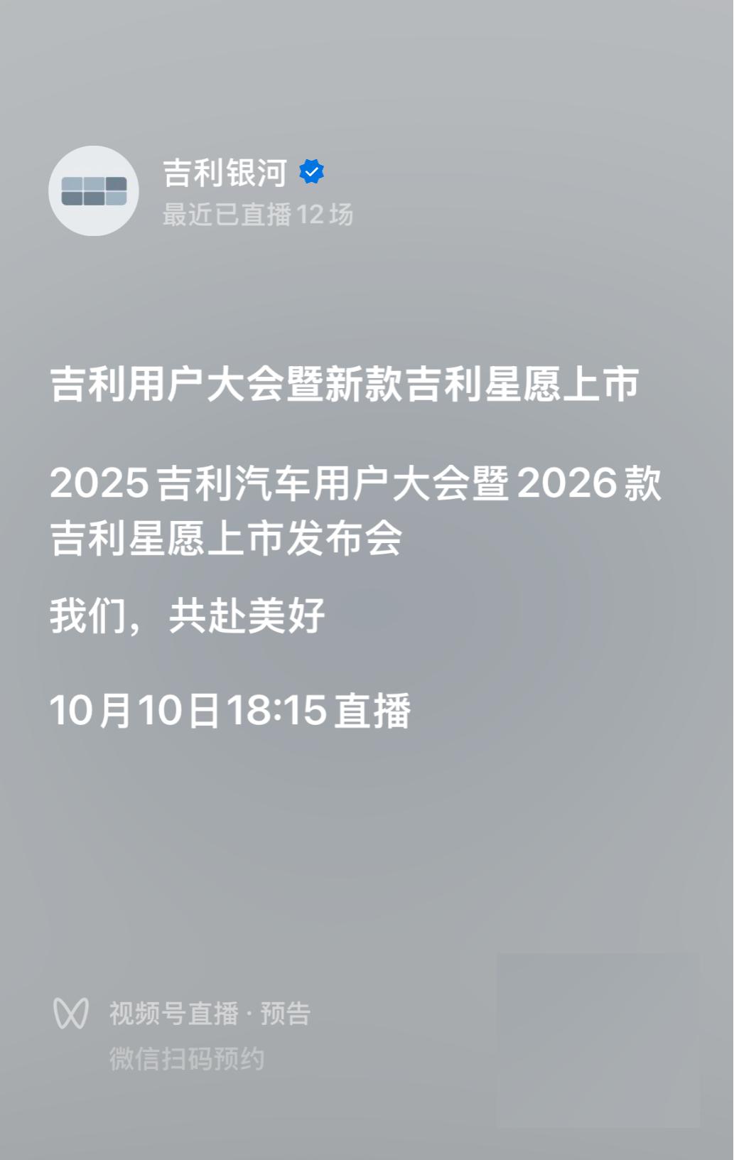 2026款吉利星愿上市发布会10月10日直播!我们,共赴美好! 2026款吉利星愿于10月10日上市发布 2025吉利汽车用户大会