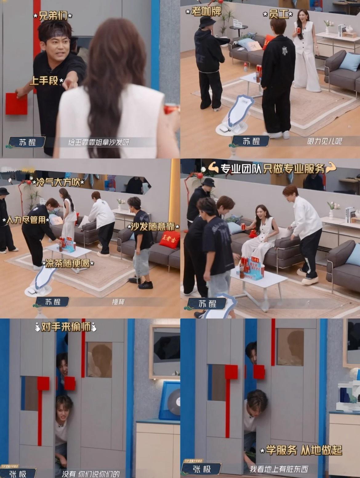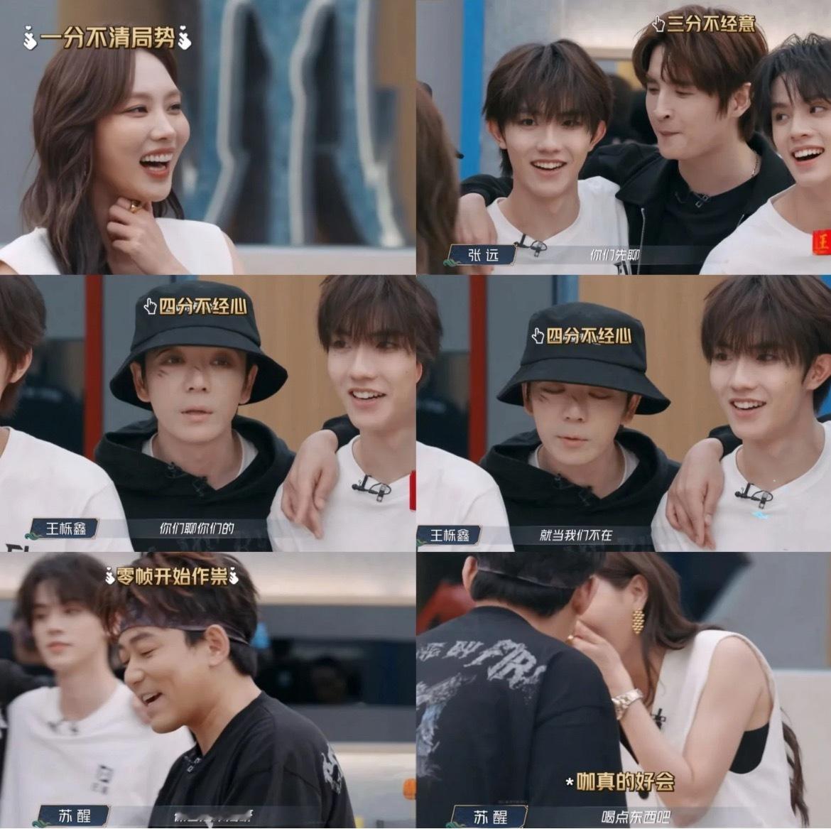 弟弟们跟姐姐聊的时候就零帧开始作祟,一下问口渴不渴要不要喝点东西,一下谈起了伴奏唱起了歌刷刷存在感,然后终于得到了争取的机会就各种“套路”走起来,哥几个配合着就相当有默契!