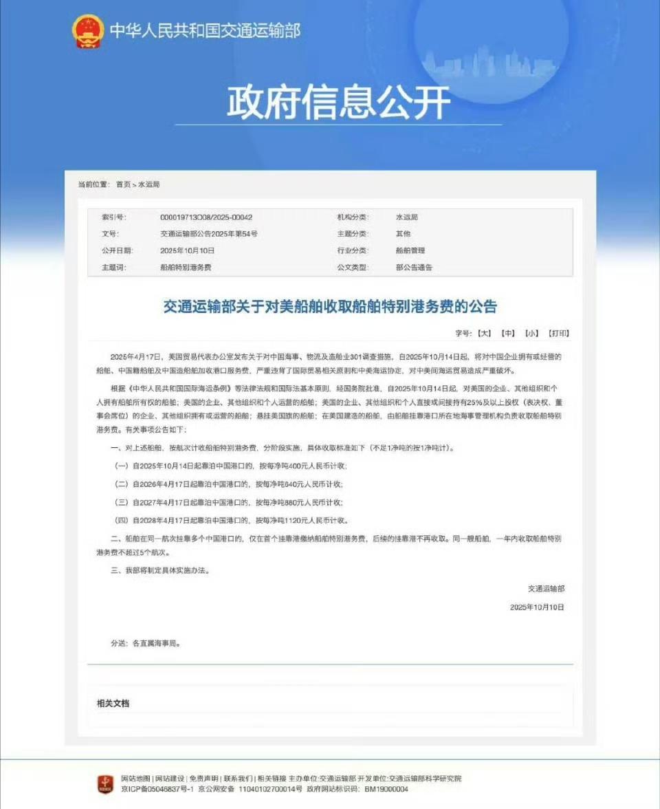 对等反制---对大漂亮国的船舶进入我国港口征收对等港务费!M国持有、持股、制造及