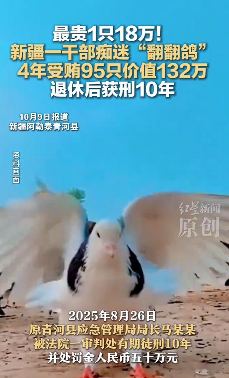 新疆青河,一男子曾担任应急管理局局长等职务,在任期间,偶然迷上了观赏鸽“翻翻鸽”,利用职务便利,接连对管理对象张口索要“翻翻鸽”,价格在几千到数万元不等,数量达到95只。最疯狂时,一只极品鸽子竟要价18万元,足够在当地买套小户型房子。在退休后,男子仍不忘索要最后一笔3万元现金。事发后,经鉴定,男子索要的95只“翻翻鸽”达到132万元。 据红星新闻10月9日报道,马某1973年出生,大专文化,从基层一步步走上领导岗位,历任县商务和经济信息化委员会副主任、工业园区管理委员会副主任、应急管理局局长等职。 然而,谁也想不到,一个看似无害的爱好,饲养“翻翻鸽”,让他一步步陷入犯罪的深渊,最终在退休后站上被告席。 2015年开始,马某升任领导职务,手中开始掌握一些实权,起初,马某还能保持警惕,但时间一长,心态渐渐失衡。 直至2024年12月,马某在多个单位、部门担任要职,项目审批、工程承揽……这些工作让他成了不少企业老板的“座上宾”。 2021年,马某第一次见到了“翻翻鸽”,立刻被迷住了,他特别喜欢翻翻鸽在空中表演“筋斗”的样子,觉得那是一种艺术。 渐渐地,普通的鸽子已经不能满足他的胃口,他想要更多、更珍贵的品种。 2021年4月,时任应急管理局局长的马某,在一次检查工作中认识了一家矿产资源勘查开发公司的副总经理周峰(化名)。 闲聊中,马某故意提到自己对翻翻鸽的喜爱,要求周峰为其购买一只价值1.4万元的翻翻鸽。 这只鸽子成了马某受贿生涯的转折点,他发现,比起直接收钱,收受鸽子显得“雅致”多了,似乎不那么赤裸裸。 从2021年开始,马某对翻翻鸽的痴迷近乎疯狂,开始不断向管理对象索要翻翻鸽,到2023年底,他已经收了56只翻翻鸽,2024年又收了28只,共收受95只,总价值132.43万元。 这些鸽子中最便宜的也要几千元一只,最贵的除了那只18万元的,还有一只价值10万元的。 2024年12月,马某正式从应急管理局退休,按理说,他应该安享晚年了。 但,尝惯了甜头的马某,在退休后依然不忘“创收”。 2024年12月,他又向一位私人企业主索要了3万元现金,这时他已经完全丧失了警惕性,认为“退休了就安全了”。 然而,法网恢恢,疏而不漏,马某的所作所为终究败露。 调查结果显示,在10年间,马某利用职务便利,为17人在项目申请、资金拨付、工程承揽等方面提供帮助,非法收受、索取财物共计242.43万元,其中,翻翻鸽价值132.43万元。 后来,检察院以受贿罪对马某提起公诉。 那么,从法律角度,法院会如何判决呢? 《刑法》第三百八十五条规定,国家工作人员利用职务上的便利,索取他人财物的,或者非法收受他人财物,为他人谋取利益的,是受贿罪。 第三百八十六条规定,对犯受贿罪的,根据受贿所得数额及情节,依照本法第三百八十三条的规定处罚。索贿的从重处罚。 本案中,马某收受的“翻翻鸽”并非普通赠与,宋军等行贿人员均为马某职务管辖范围内的管理服务对象,双方并非平等的私人朋友关系,其交往建立在马某的职权基础之上。 马某在收受鸽子前后,利用职务便利为对方在工程项目、资金拨付等方面提供了具体帮助,形成了典型的“权钱交易”对价关系。 而调查中发现,马某收取的95只鸽子几乎都是他主动向管理对象索取的,这种主动索取的行为,主观恶性更大,进一步排除了“人情往来”的可能性。 结合司法解释的规定,贿赂犯罪中的“财物”,包括货币、物品和财产性利益。 所以,无论贿赂的外在形式是金钱、房屋还是鸽子,只要其本质是职务行为的对价,就应纳入受贿罪的犯罪构成中进行评价。 在马某于2024年12月退休后,起仍然向某企业主索取了3万元现金。 最高法、最高检《关于办理受贿刑事案件适用法律若干问题的意见》第十条的规定,国家工作人员利用职务上的便利为请托人谋取利益之前或者之后,约定在其离职后收受请托人财物,并在离职后收受的,以受贿论处。 本案中,马某在退休前长期为该请托人谋取利益,其在退休后实施的索取行为,是此前权钱交易关系的延续和实现,仍应当以受贿罪追究刑事责任。 不过,马某到案后主动供述了大部分未被掌握的同种较重罪行,依法构成坦白,依法可以从轻处罚。 马某自愿认罪,同意量刑建议并签署具结书,符合认罪认罚从宽制度的适用条件,依法可以从宽处理。 马某家属在案发后积极退缴了大部分违法所得161.9万元,减少了社会危害结果,可以作为酌定从轻情节。 鉴于马某的违法金额达到数额特别巨大的标准,依法在“十年以上有期徒刑”的法定刑幅度内判处刑罚。 最终,法院综合考虑马某从重和从轻情节,判处其有期徒刑十年,并处罚金五十万元,符合罚当其罪、罪刑相适应的原则。 对此,您怎么看?