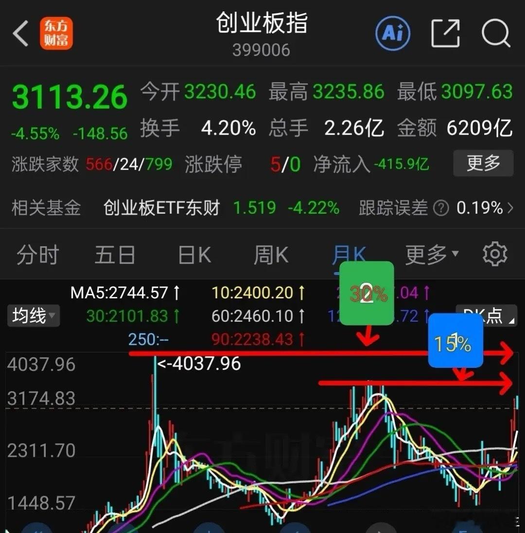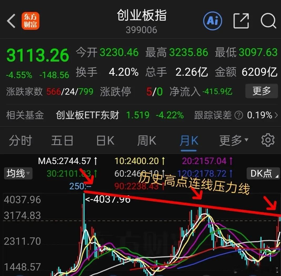 从整体趋势来看,创业板指数距离2021年高点3576点还有15%,距离历史高点还有30%。后期触摸21年高点有希望,创历史新高那是明后年的事了。