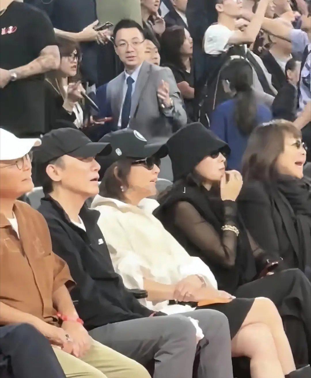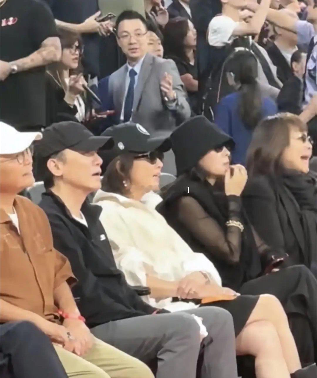 NBA章子怡梁朝伟夫妇同框亮相,章子怡与同框刘嘉玲热聊,嘉玲姐状态超绝,章子怡打扮时尚,气场超强尽显国际巨星风范