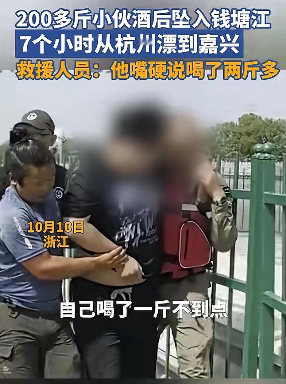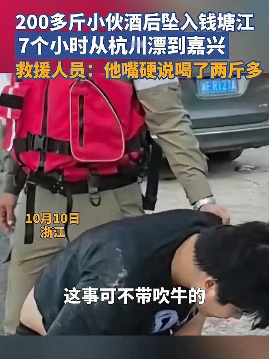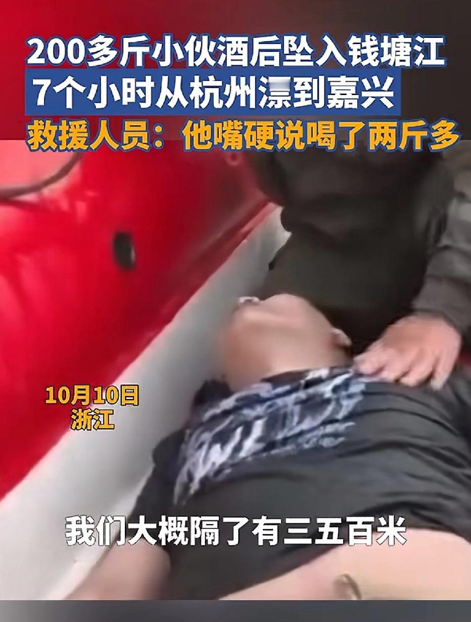 200多斤的小伙醉酒后掉进钱塘江,从杭州一路漂到了嘉兴。漂了七个多小时。 路过的