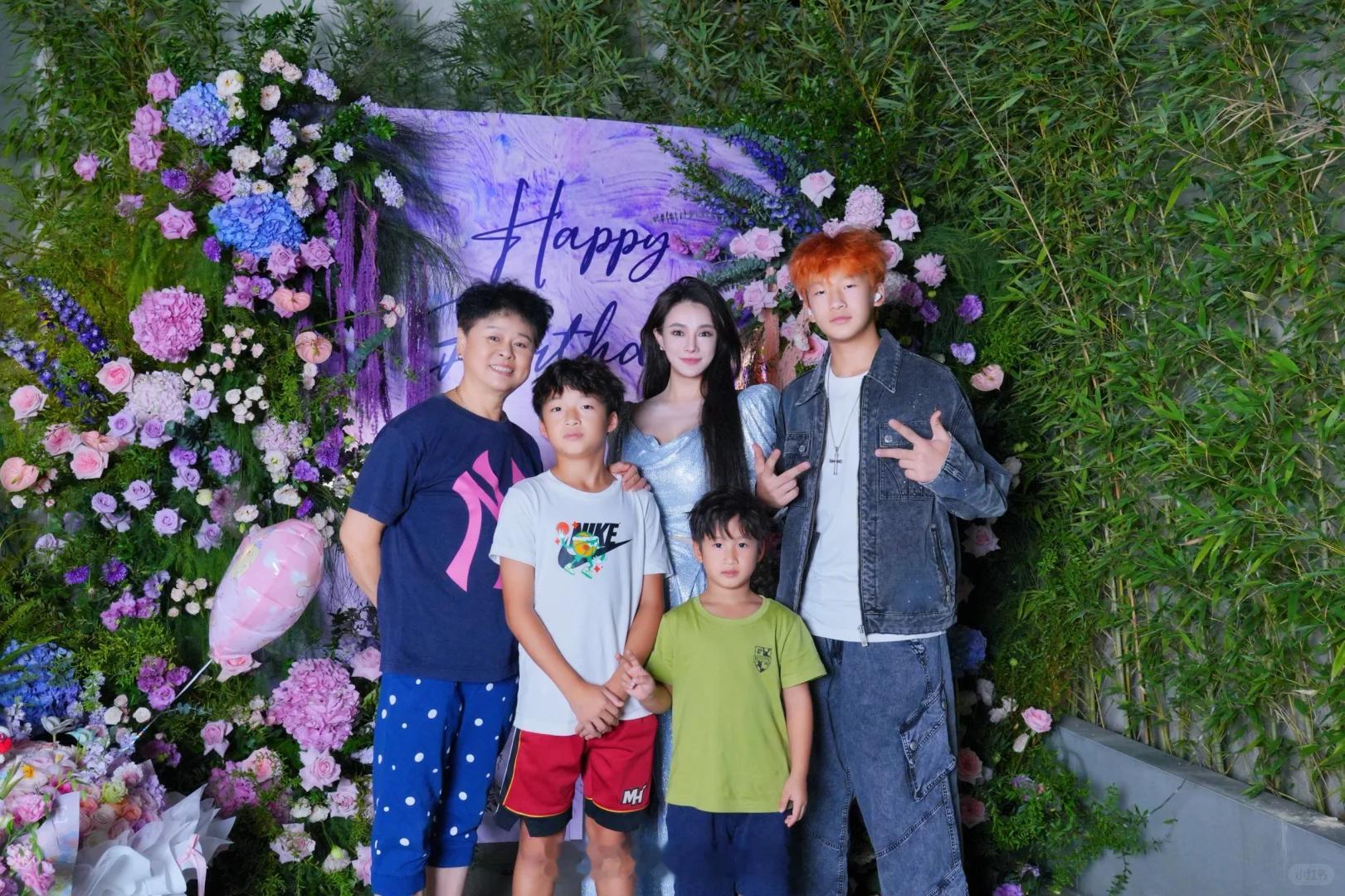 冉莹颖儿子橙发邹明轩橙发 冉莹颖41岁庆生照,亲人好友一同为她庆祝,儿子邹明轩橙发很亮眼!