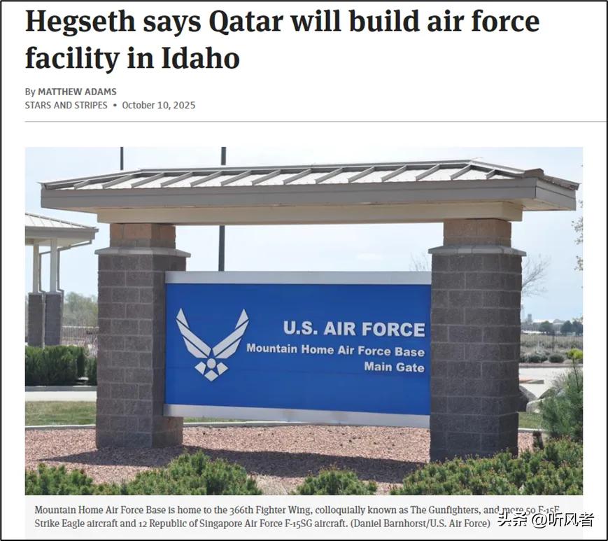 【一个新建的基地!让美国民众慌了】🇺🇸 美国国防部突然批准卡塔尔空军入驻爱达荷州军事基地!特朗普支持者集体暴怒,这背后究竟隐藏着什么秘密? “这是出卖美国!”网红评论员劳拉·鲁默翻出2019年血案——沙特受训军官曾在美基地枪杀3名美军。如今允许卡塔尔战机飞行员入驻,瞬间引爆安全忧虑。 耐人寻味的是,卡塔尔全额出资建训练场,管理权却归美军。更讽刺的是,当下联邦政府停摆,美军工资难发,却有钱帮外国建基地?特朗普“美国优先”遭打脸。 其实,此举实为美国中东布局关键一步。卡塔尔不仅是美军中央司令部驻地,更坐拥全球最大天然气田。美方通过军事合作捆绑盟友,对抗伊朗扩张。 深层看,这场争议揭露美国致命软肋:国内民粹主义与国际战略需求激烈碰撞。当“美国优先”遇上地缘政治,华盛顿正陷入两难困局。