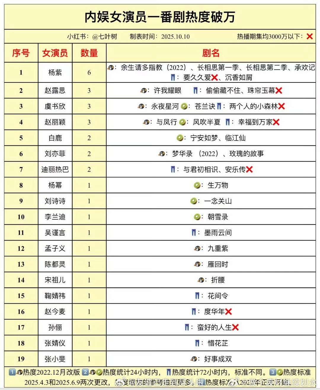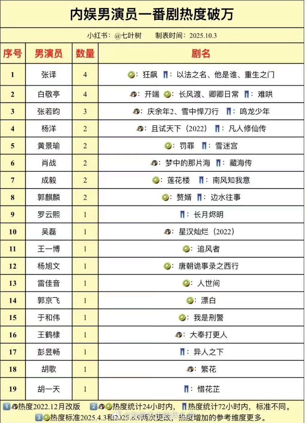 内娱男女演员一番剧破万数量统计🈶