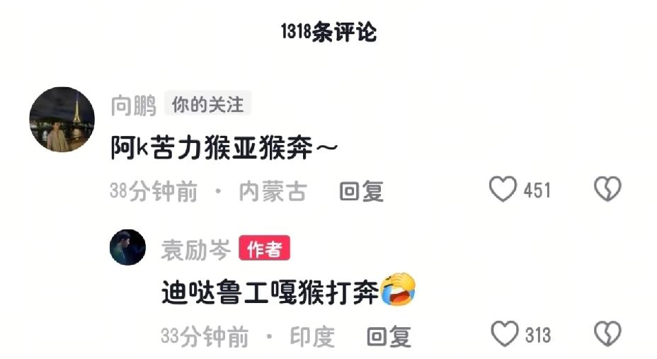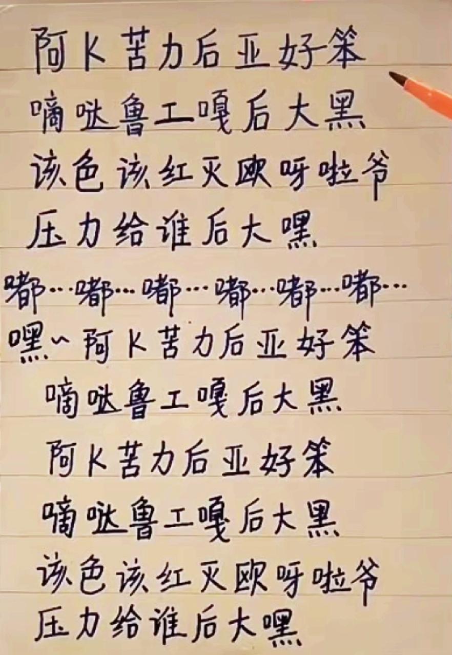 完了完了, 全网的网友都被国乒的这小哥俩带偏了, 一打开抖音就是印度这首 “阿k苦力猴亚猴奔, 迪哒鲁工嘎猴打奔……” 自从国乒出发亚锦赛之后, 印度成了球迷们的焦点。 向鹏和袁励岑更是对上了暗号, 这一对不要紧, 全网都在唱这首印度“名曲”。 更有有才的网友把所有的歌词, 用中文写下来, 以方便全网学习这首歌。 球迷们纷纷调侃道, 这两天中这个旋律的毒了, 耳边会随时回响。 跟着中文竟然哼唱起来, 咱也是会唱一首外国歌曲了。 我相信不出一夜, 这首歌全网都会唱了。 国乒的力量真是无形的, 他想让你笑你就笑, 想让你哭你绝对笑不起来, 这就是国乒的魅力。 (图片源自于网络)