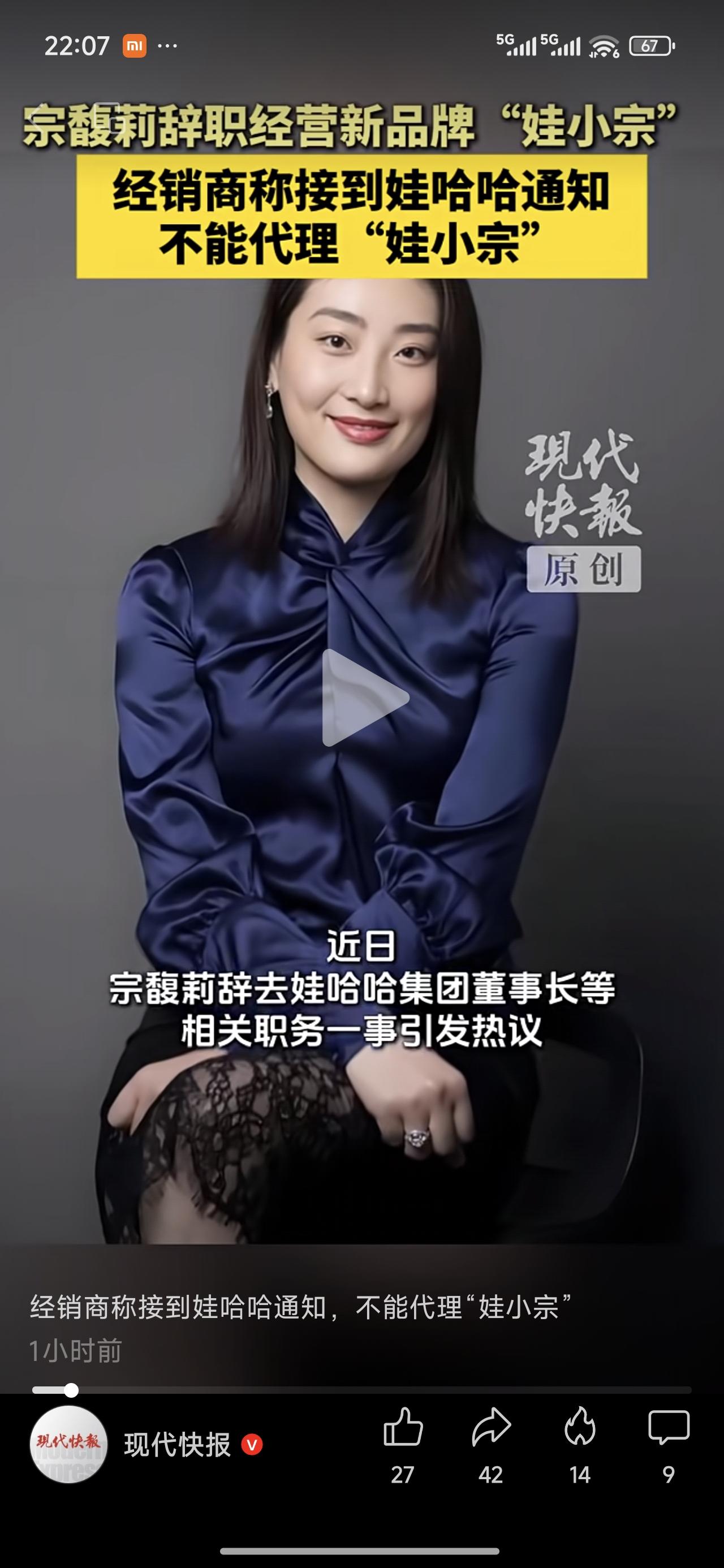 说实话,对宗馥莉的新品牌不太看好,同时,个人认为,娃哈哈这个品牌大概率也要走下坡路了。娃哈哈品牌之争