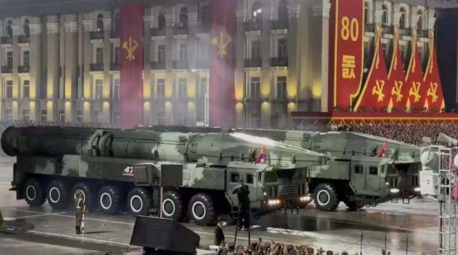 朝鲜冒雨凌晨0点举行大阅兵,现场一股肃杀之气,展示多种高超音速武器! 麻烦看