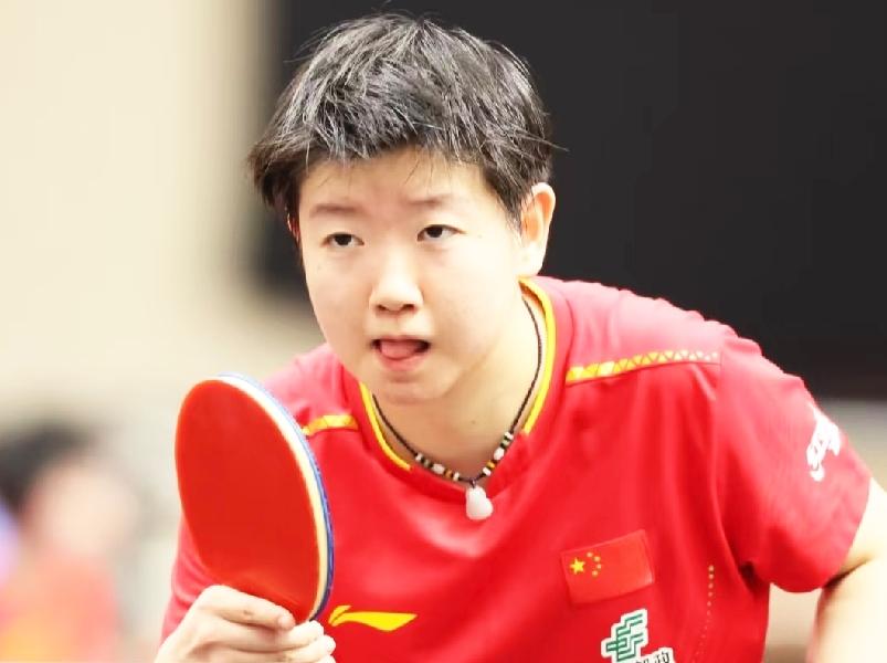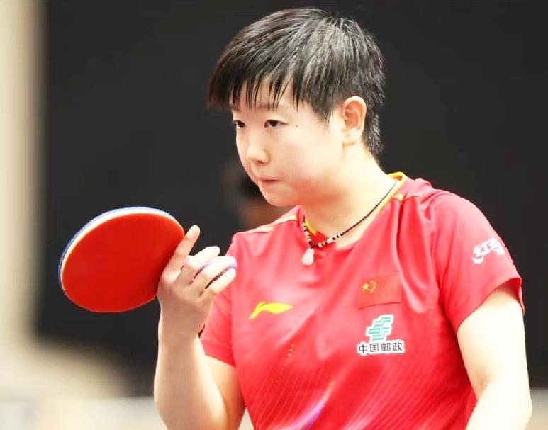 第一次见这么潦草的莎莎, 她笑得多开心, 头发就有多潦草。 本次亚锦赛国乒以潦草为主, 可是越潦草越安全, 如果这样的话, 那他们就尽情的潦草吧。 这训练场馆也太热了吧, 莎莎的头发像刚从水里捞出来一样, 头发都开始炸毛了。 即使这么艰苦的环境, 莎莎依然笑得那么开心, 那么“没心没肺”, 看来训练场里欢乐多呀。 就是这样湿答答的莎莎, 一点都不影响她的可爱。 (图片源自于网络)