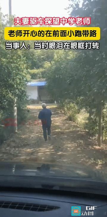 “泪目了!”江西赣南,夫妻俩驱车探望中学老师,快到家时,老师兴奋地小跑在前面带路