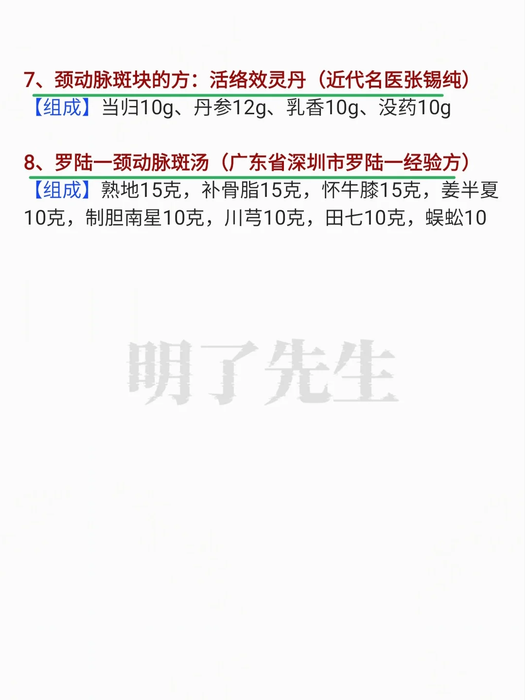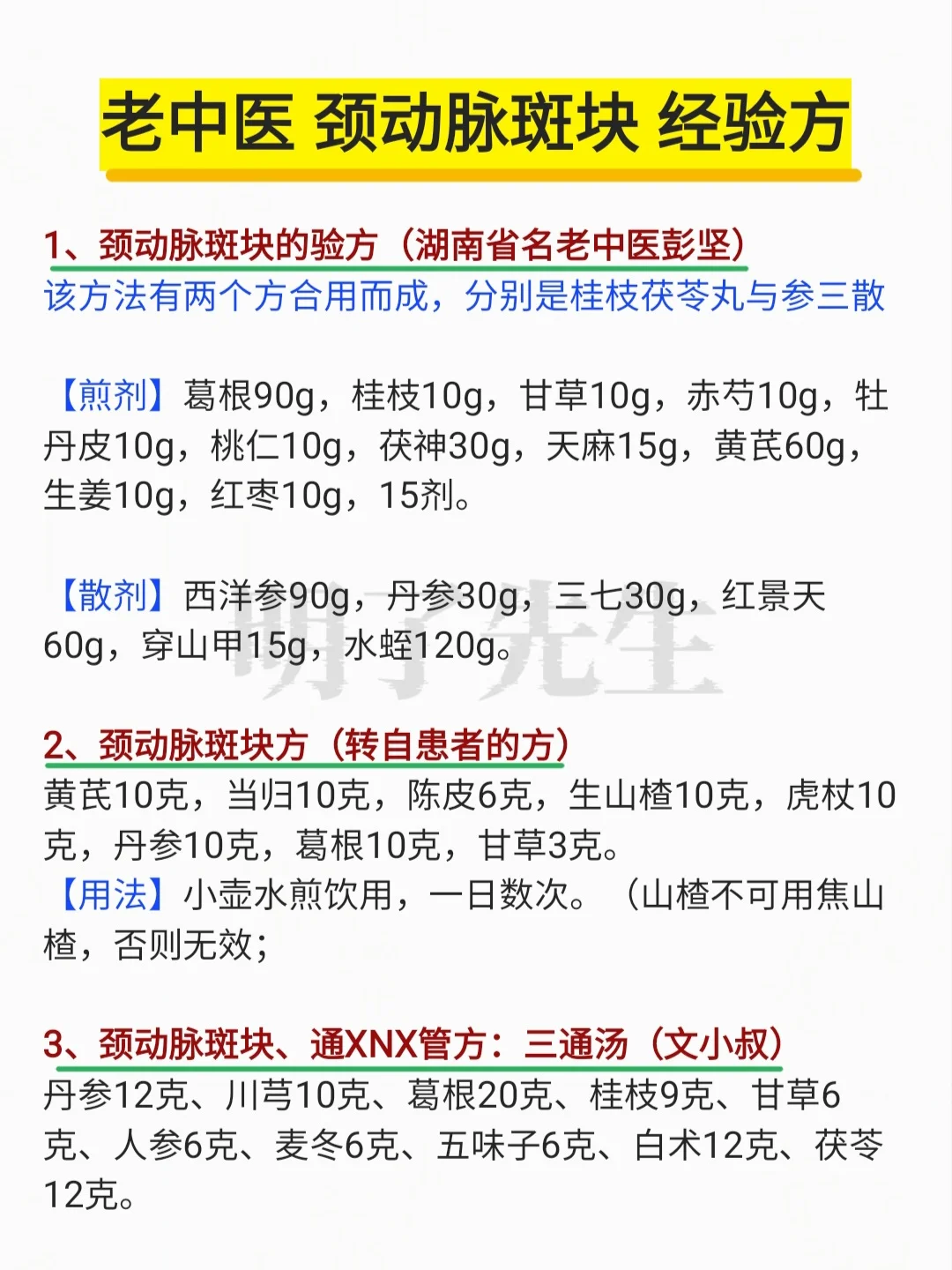 老中医各自的“颈动脉斑块”经验方