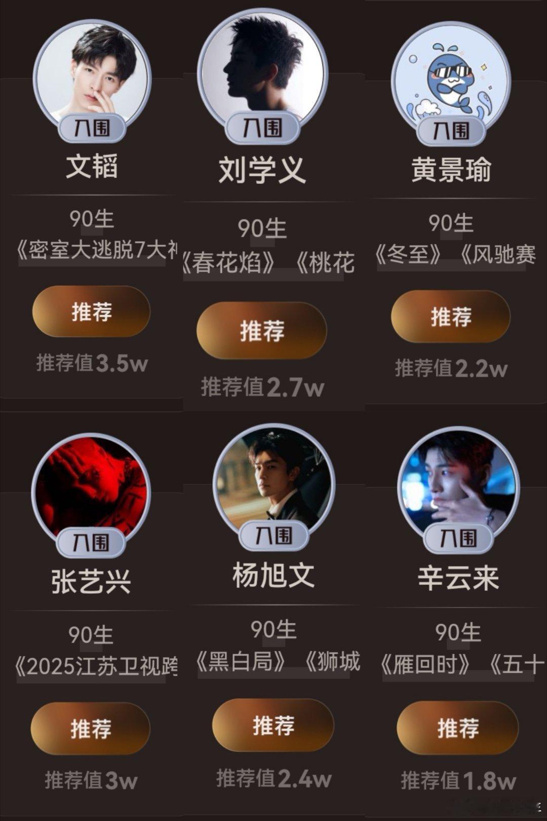 肖战、刘宇宁、成毅、周深、檀健次、丞磊、魏哲鸣、李现、杨洋、蒲熠星、张晚意、白敬亭、文韬、张艺兴、刘学义、杨旭文、黄景瑜、辛云来、龚俊、王凯沐、张彬彬、黄子韬、韩东君、欧豪、王天辰、秦俊杰、邵子恒、董子健、TizzyT、翟佳宁