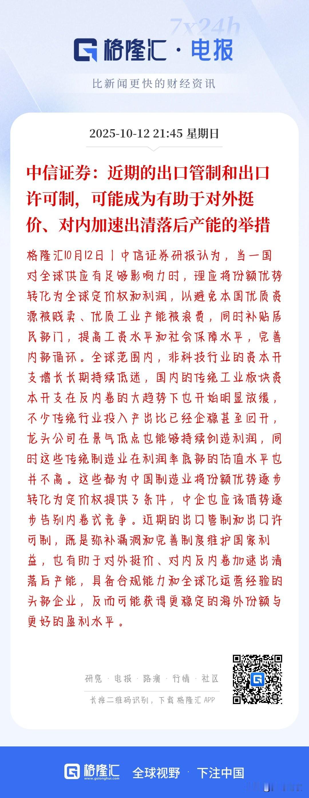 这次中信确实说的不错,优势产业确实应该转化为行业的定价权了 这次稀土出口管制就是一个定价权的契机,全世界现在都在用中国的稀土,定价权就应该在中国手里,按照定的价格爱买不买,未来也将成为行业的一个标杆价格。 对内可以防止“反内卷”,对外可以有稳定的盈利空间还能有稳定的客户来源。 这次的贸易战虽然是围绕稀土展开的,但是稀土并不会受影响,更不会出现没有销量的情况,全球都等着中国稀土的出口呢,这就是中国手里的一手王炸。即使特朗普来了也无济于事,只能无能狂怒,利用加关税过过嘴瘾。