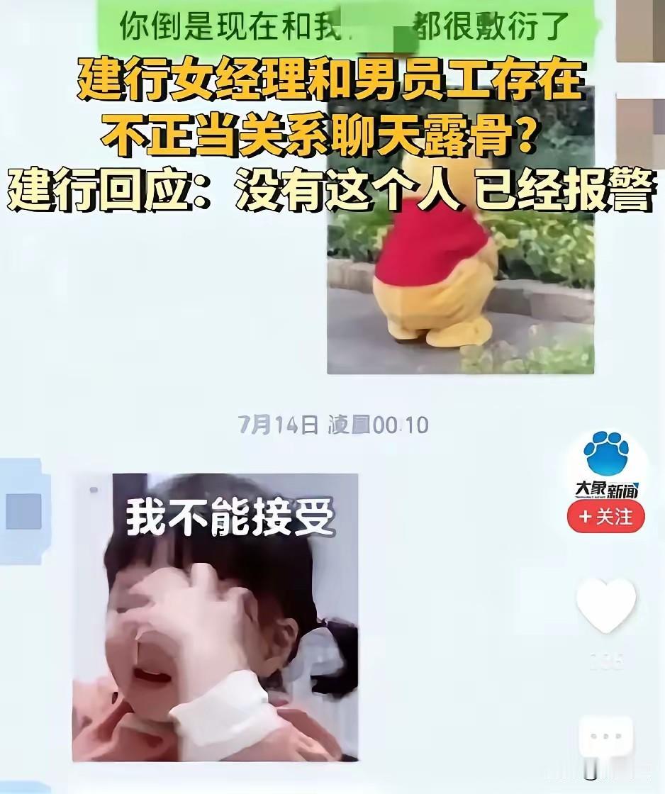 网络热传福建福州建设银行支行女经理与已婚男下属露骨聊天记录,银行方面否认,称纯属