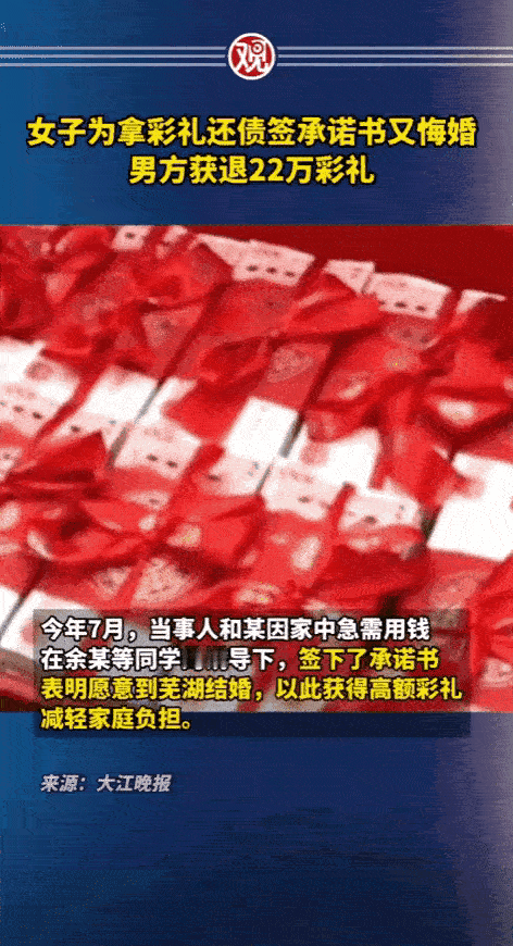 安徽芜湖,女子家中负债累累,为解燃眉之急,她在同学的诱导下,和一男子签订结婚承诺书,一次性拿到了22万的彩礼。相处两个月后,女子觉得这不是她想要的爱情,于是提出悔婚。男子没有强求,同意退婚但要女子退还22万彩礼,不料却遭到女子拒绝。女子:彩礼用来给老家还债了,只有13万 爱要不要。男子报警后,民警的处理让人竖起了大拇指。 据观察者网10月9日报道 这场纠纷发生在今年夏天的芜湖。云南姑娘和某因为老家欠了债,急需用钱,在同学余某的“出主意”和牵线下,与芜湖男子刘杰见了面。双方谈妥条件后,和某签下一份结婚承诺书,表明愿意嫁到芜湖,刘杰则为此支付了22万元的彩礼。 和某拿到钱后从云南来到芜湖,开始与刘杰共同生活,但缺乏感情基础的两人很快感到不适,相处了近两个月后,和某表示后悔,决定不结婚了。 刘杰没有强求感情,只是要求全额退还22万元彩礼,但是和某已将大部分钱转回云南老家还债,无法全额退还,她的账户里只剩下13万元。 芜湖市公安局龙山派出所的民警介入了这起纠纷,处理此案的治安民警朱迅采用了“背对背”的沟通策略。他分别与和某、刘杰以及他们的家属耐心交谈,理清症结,缓和情绪。 经过民警的不懈努力,双方最终达成协议:女方一次性退还全部22万元彩礼,男方则不再追究其他责任。在派出所和社区工作人员的见证下,刘杰拿回了全部彩礼,并向民警赠送了锦旗表示感谢。 这事传到网上,评论区里都在夸民警会办事。有人说本来以为要闹到法院拖半年,没想到民警几句话就捋顺了,既没让男方亏了钱,也没把女方逼到绝路。我之前邻居家也有类似的彩礼纠纷,两边吵得差点动手,最后还是社区民警一点点劝,才找到双方都能接受的办法。 其实这种事儿最怕的就是各不让步,民警的“背对背”沟通特别聪明,既照顾到了双方的情绪,又能实实在在解决问题。能让两边都满意,这才是真本事。各位读者你们怎么看?欢迎在评论区讨论。