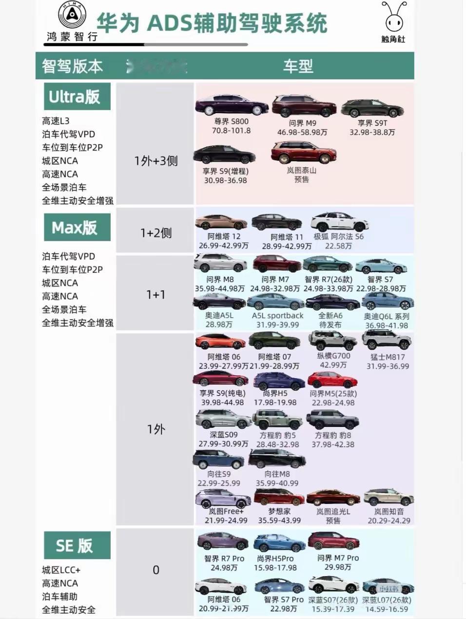 鸿蒙智行 L3 上车真的近在眼前啦!华为 ADS 4.0 高速 L3 商用解决方案发布后,不少车主既心动又纠结。问界 M9 等车型硬件都准备好了,可法规没落地,有人担心买了车等半年都用不上。 鸿蒙智行不同车型的 L3 潜力差异很大。华为 ADS 分 Ultra 版和 Max 版,Ultra 版支持高速 L3 等高阶功能,对应问界 M9 等高端旗舰车型;Max 版有城区 NCA 等功能,但未提及 L3,像问界 M7 这类车属于此版。 另外,鸿蒙智行还给问界 M9 老车主提供原厂硬件升级方案,这操作很“宠粉”,希望法规能快点落地,让大家早日体验脱手驾驶! 鸿蒙智行 L3 上车倒计时!M9 等车型硬件就位,法规落地即享脱手驾驶 当工信部明确 L3 级自动驾驶事故责任认定标准,北京、武汉等地试点法规逐步落地,智能驾驶“责任从人到车”的历史性转变正式进入倒计时。此刻,鸿蒙智行旗下问界 M9 等车型已完成 L3 级智驾硬件全预埋,只需法规全面放开,用户即可解锁“脱手脱眼”的高阶驾驶体验,这场关于智能出行的变革已箭在弦上。 L3 与当下主流的 L2+ 智驾最核心的差异,在于责任归属的根本性转变。根据新规,L3 系统启动状态下发生事故,车企至少承担 70% 责任,这标志着其从“驾驶辅助”升级为“有条件自动驾驶”。而实现这一跨越的基础,是极致的硬件堆料与技术冗余,鸿蒙智行显然已提前完成布局。 作为核心车型,2025 款问界 M9 直接将 L3 硬件标准拉满。新车搭载 4 颗激光雷达,包括 1 颗 192 线前向主雷达与 3 颗高精度固态侧后向雷达,配合 5 颗华为自研 4D 成像毫米波雷达与 11 个摄像头,侧后方盲区缩小 30%,横向探测精度可达 3 厘米以内[__LINK_ICON]。这种“激光雷达+4D 毫米波雷达”的双重感知方案,能精准识别沟渠、充电桩等障碍物,即便雨雾沙尘天气也能规避目视不可见的风险,为责任转移提供了硬件支撑。 算力与安全冗余同样是 L3 落地的关键。问界 M9 搭载的华为乾崑智驾 ADS 3.3 系统,硬件基础已满足 L3 需求,且计划于第三季度升级至 ADS 4.0 版本,正式具备 L3 智驾能力[__LINK_ICON]。其配备的双电源、双制动系统,可确保系统故障时车辆仍能安全停靠,这种冗余设计正是 L3 级别的硬性要求。更值得关注的是,华为还推出 600 万元自驾无忧险,构建起行业首个车企与保险联合兜底的责任保障体系。 除了硬核技术,鸿蒙智行还解决了用户的后顾之忧。针对现款问界 M9 车主,品牌推出原厂硬件升级服务,可通过加装激光雷达、升级智驾芯片等方式解锁 L3 能力,打破了“换代即淘汰”的行业局限[__LINK_ICON]。这种“硬件可进化”理念,让早期车主也能同步享受技术进步的红利,大幅提升了车型的生命周期价值。 当前,L3 落地的最大变量仅剩法规的全面铺开。北京等地已明确自动驾驶条例实施时间表,而问界 M9 等车型的硬件预埋,相当于为用户提前锁定了“法规落地即享”的优先权。对于消费者而言,这意味着现在购车即可获得未来的技术升级权益,无需为等待 L3 而错失用车时机。 从技术预埋到责任保障,从硬件进化到法规适配,鸿蒙智行已构建起 L3 落地的完整闭环。当“脱手驾驶”从概念变为现实,智能出行将真正进入“人机共驾”的新阶段。对于持币观望的消费者来说,硬件就位、法规可期的鸿蒙智行车型,无疑成为当下布局智能驾驶的最优解之一。