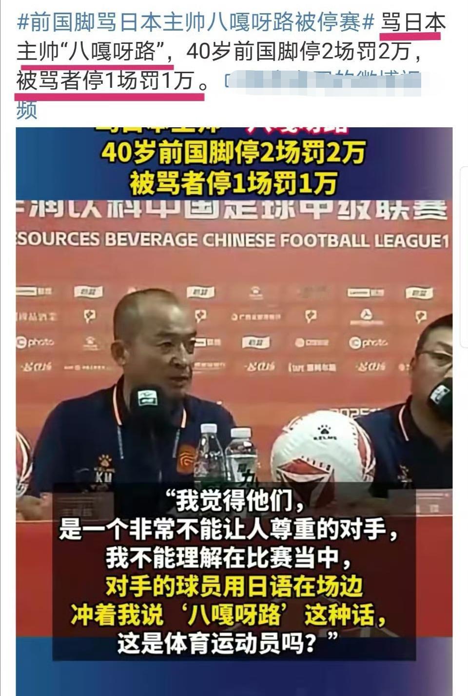 中甲球员在比赛中辱骂对手主帅八嘎牙路,对方日籍主帅把这事在赛后发布会上说出来了,然后被足协停赛一场罚一万。为何要这样?