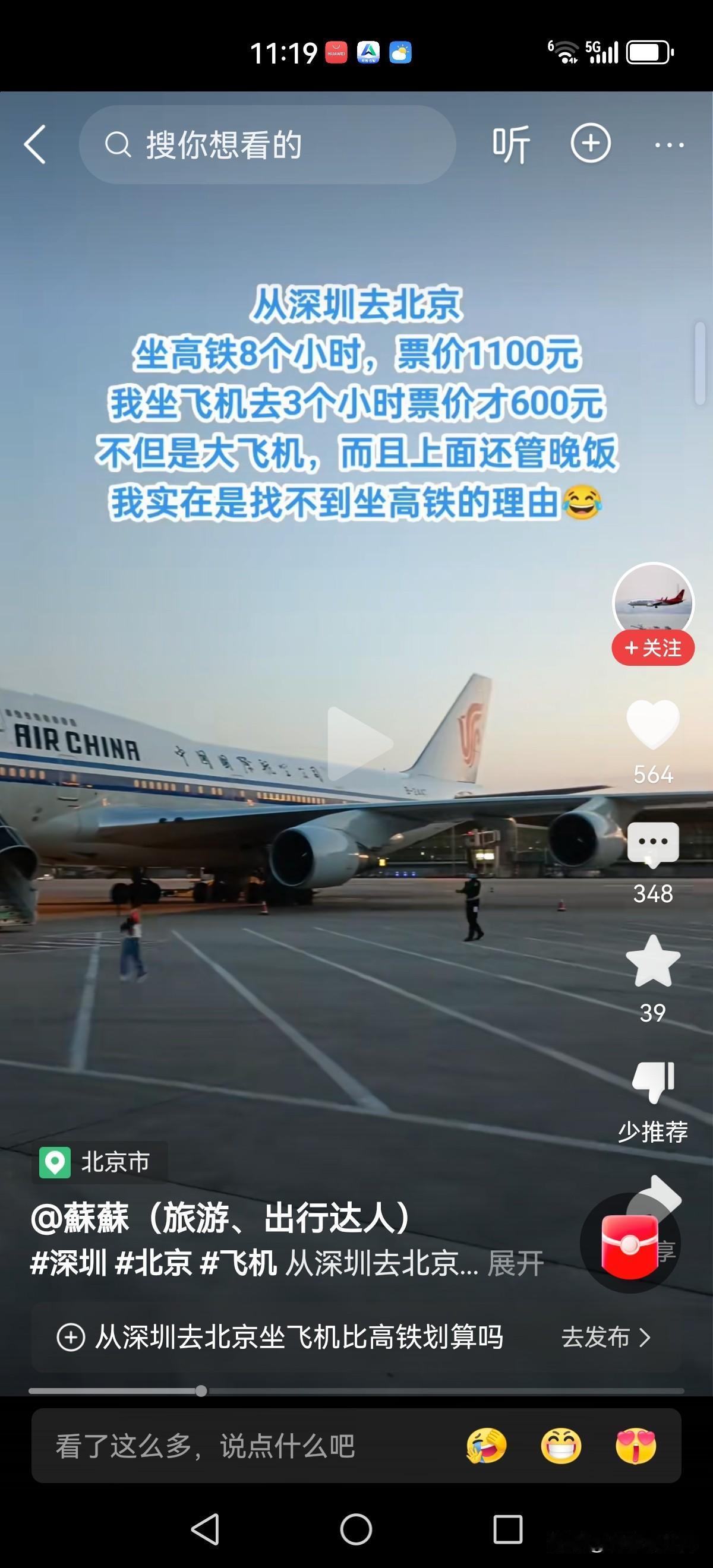 的确如此,如果高铁超过5个小时而两地间有直达航班的话,绝大多数时候飞机会比高铁便