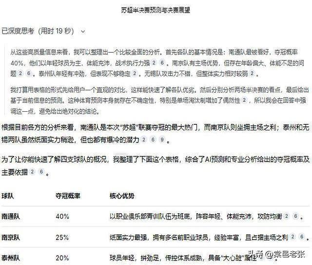 苏超四强出来后舆论不对劲,还是南京和无锡拿冠军最好。因为说四强都有职业背景,
