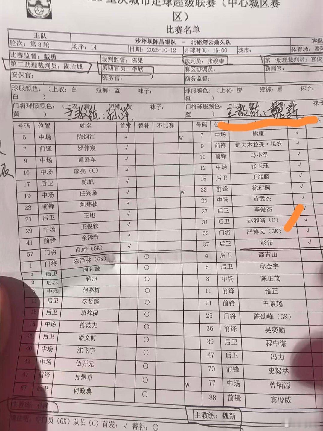 搭档重庆人民喜欢的著名喜剧演员“刘卫东”凌淋老师解说,边解说还边教我重庆话也是受益匪浅。比赛竞技水平非常高,从这名单就可以看出来,北碚场上队长赵和靖主教练魏新,沙坪坝这边也有入选过中学生国家集训队的17岁未来之星余泽昔,比赛质量绝对是业余赛事的顶级了。