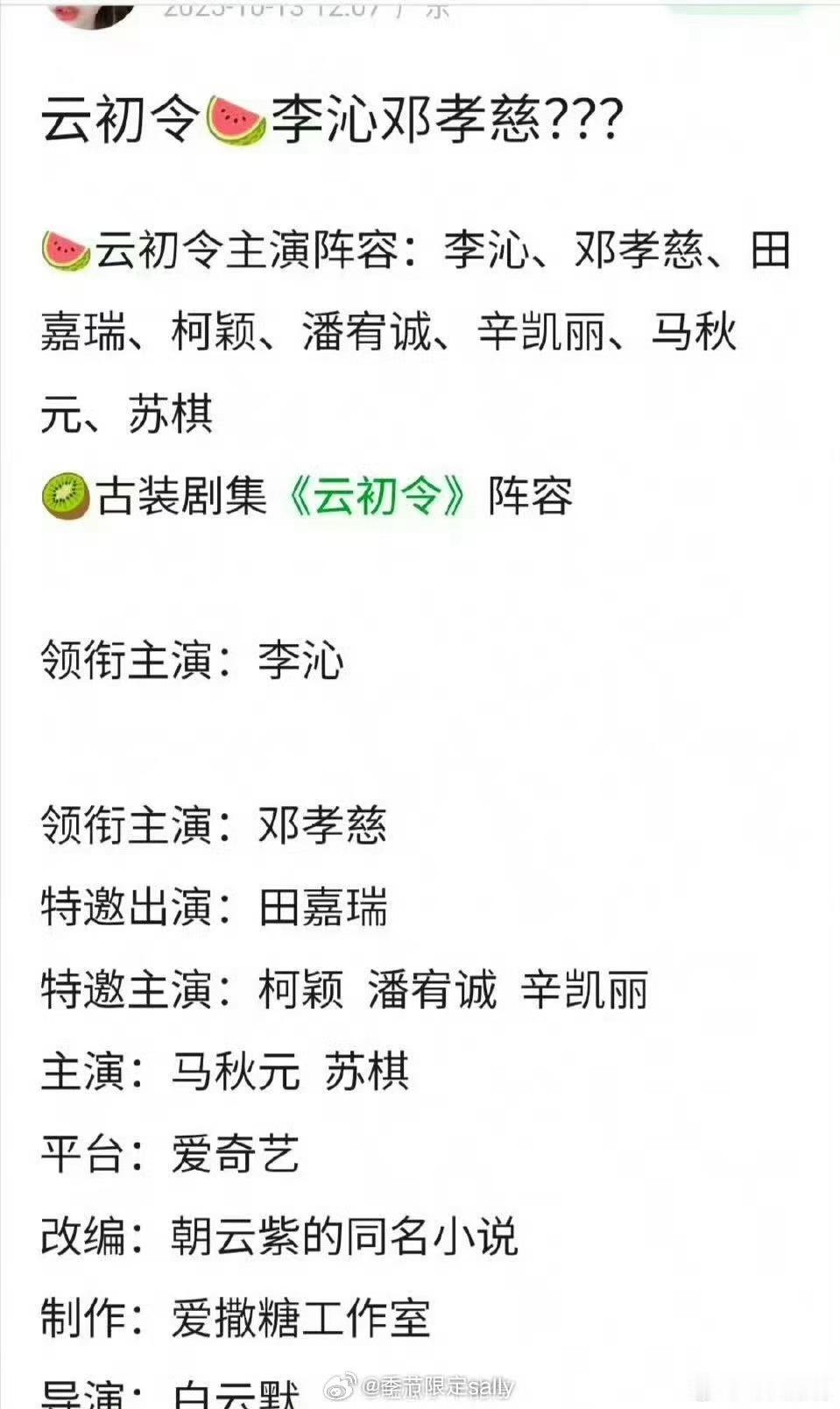 网传云初令阵容网传云初令:李沁、邓孝慈主演,你们期待吗