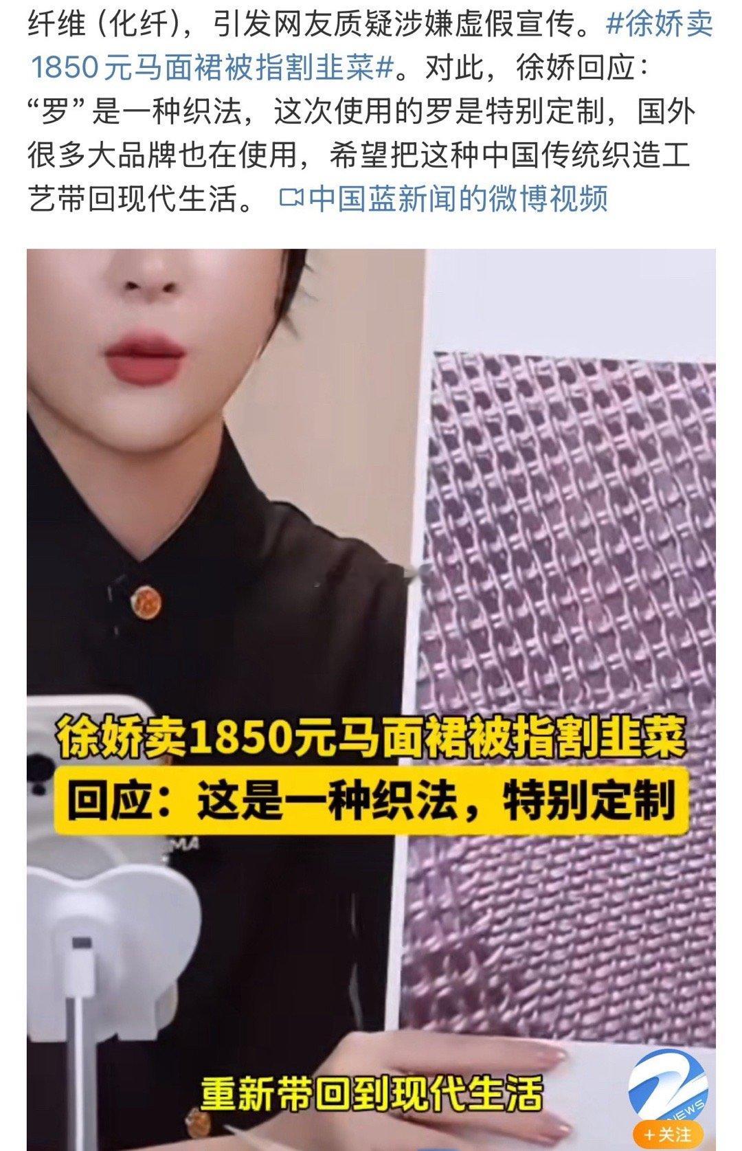 徐娇回应标价1850元马面裙面料争议