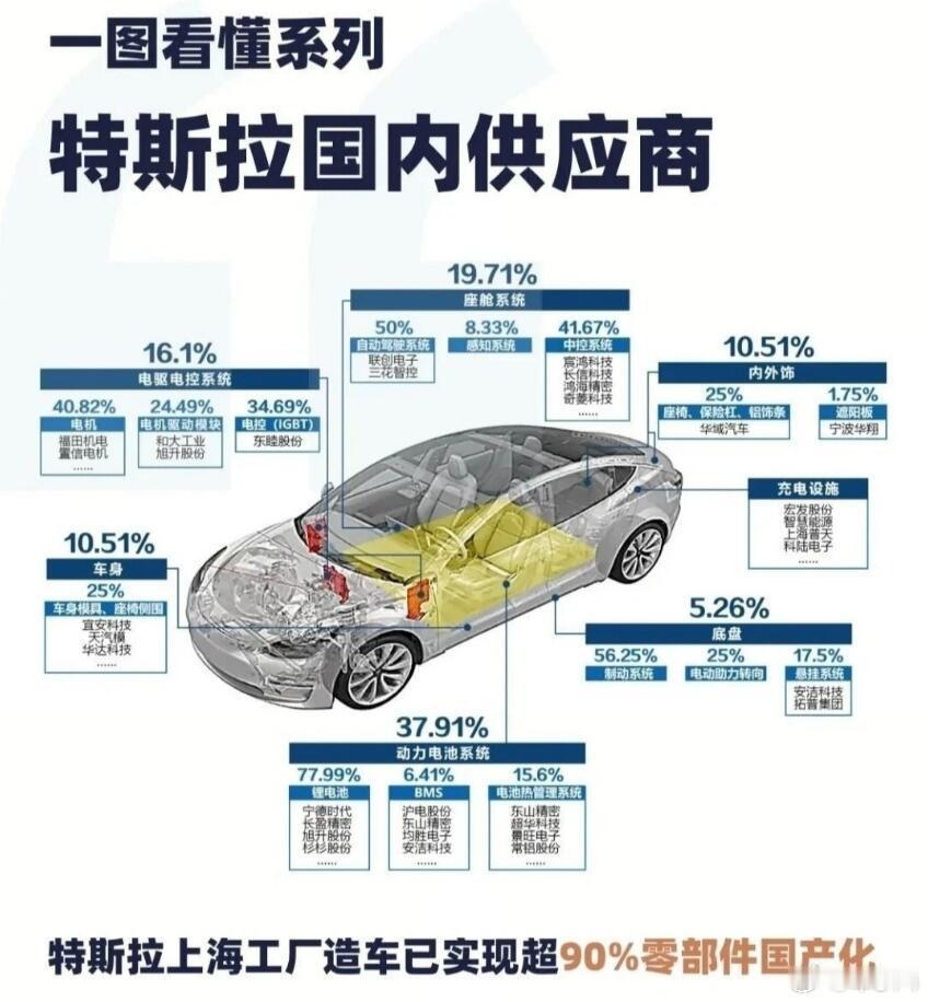 对了,大家别以为特斯拉是“进口车”,它是真正意义上的国产车了,90%的零部件都是国产供应商。换个角度来看,能造出特斯拉这么高口碑的车,用的还都是国产零部件,这就说明问题了,国产不是造不出好东西,而是看预算到没到位,主机厂对于品控的把关是怎样的。