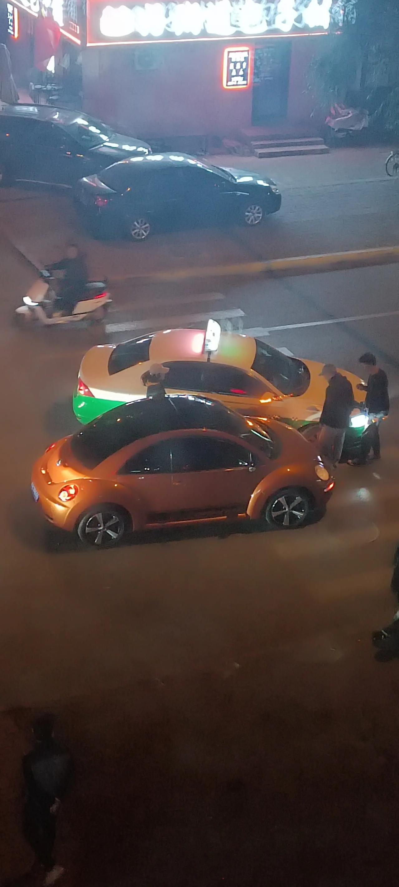 我家楼下这个丁字路口真应该安个红绿灯,总出事故。这不又剐蹭上了吗?