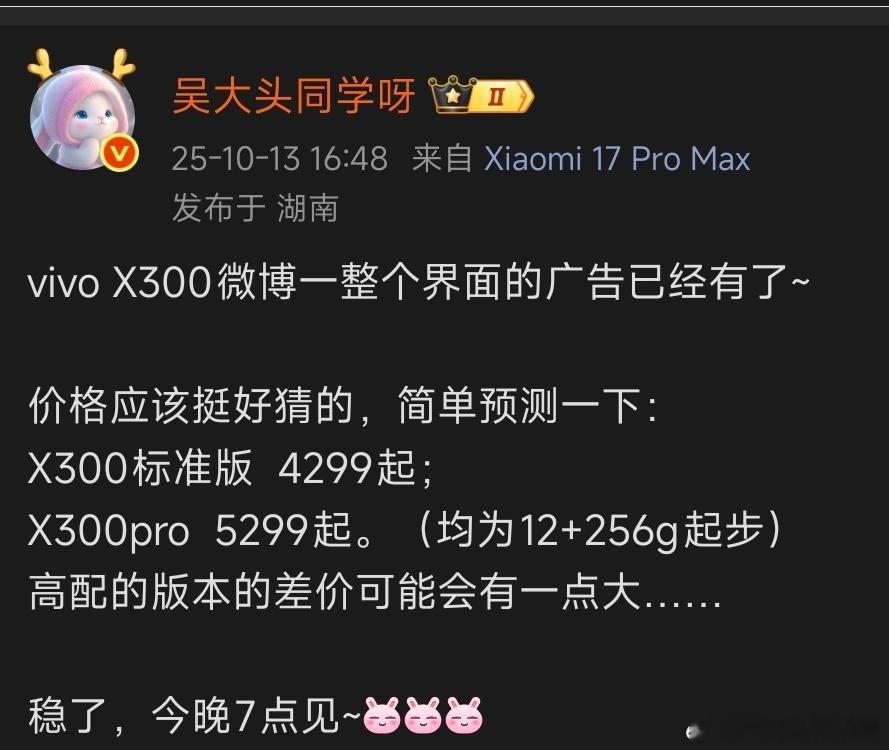 X300标准版比预期的还贵了100块钱,4399起,X300p加量不加价,依旧是5299起~