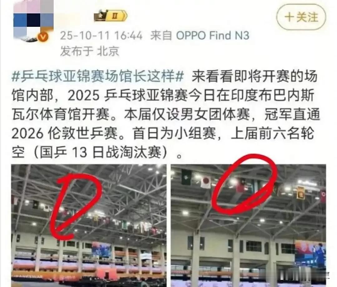 乒乓球亚锦赛悬挂台湾地区伪旗,印度主办方紧急撤下 乒乓球亚锦赛伪旗事件,乒乓球亚锦赛现场悬挂台湾地区伪旗,中方交涉后印度主办方已撤下。中国乒协发表声明称,坚决维护国家主权和领土完整,任何分裂行为都不会得逞。这一事件再次提醒国际赛事主办方需严格遵守一个中国原则,避免类似错误发生。