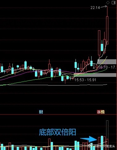 再来看,“底部双倍阳,反转向上会走强”,这句话告诉我们,在股价底部出现两根阳线,且第二根阳线比第一根更长时,股价很可能即将反转向上。