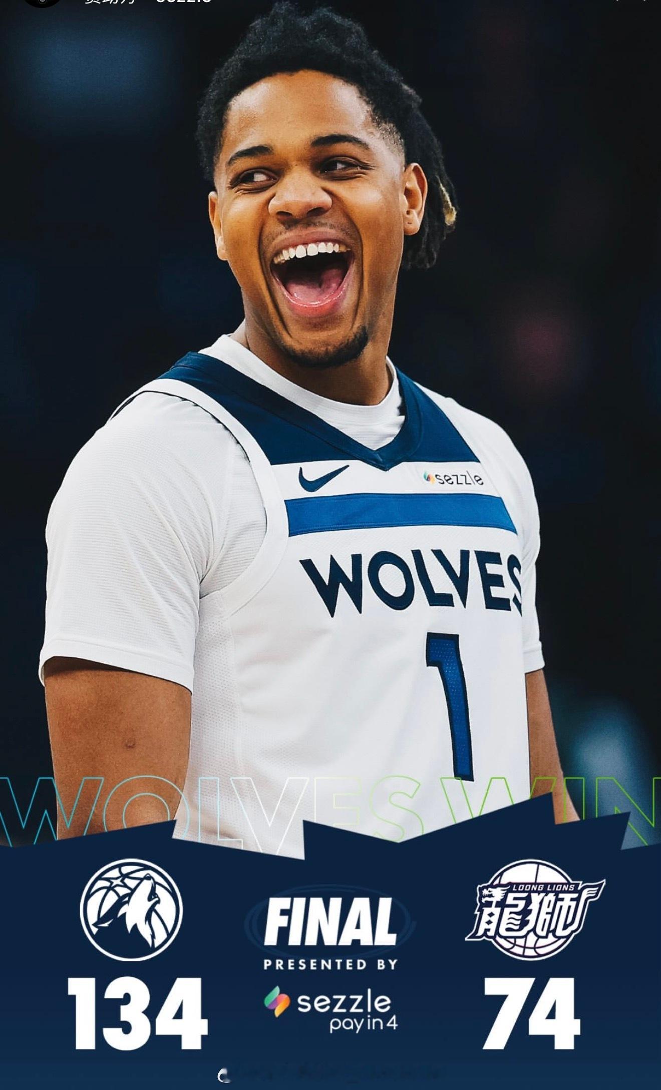 广州龙狮面对首发球员全部缺席的森林狼输了60分,龙狮8名国内球员合计只拿到了26分nba季前赛 ​​​