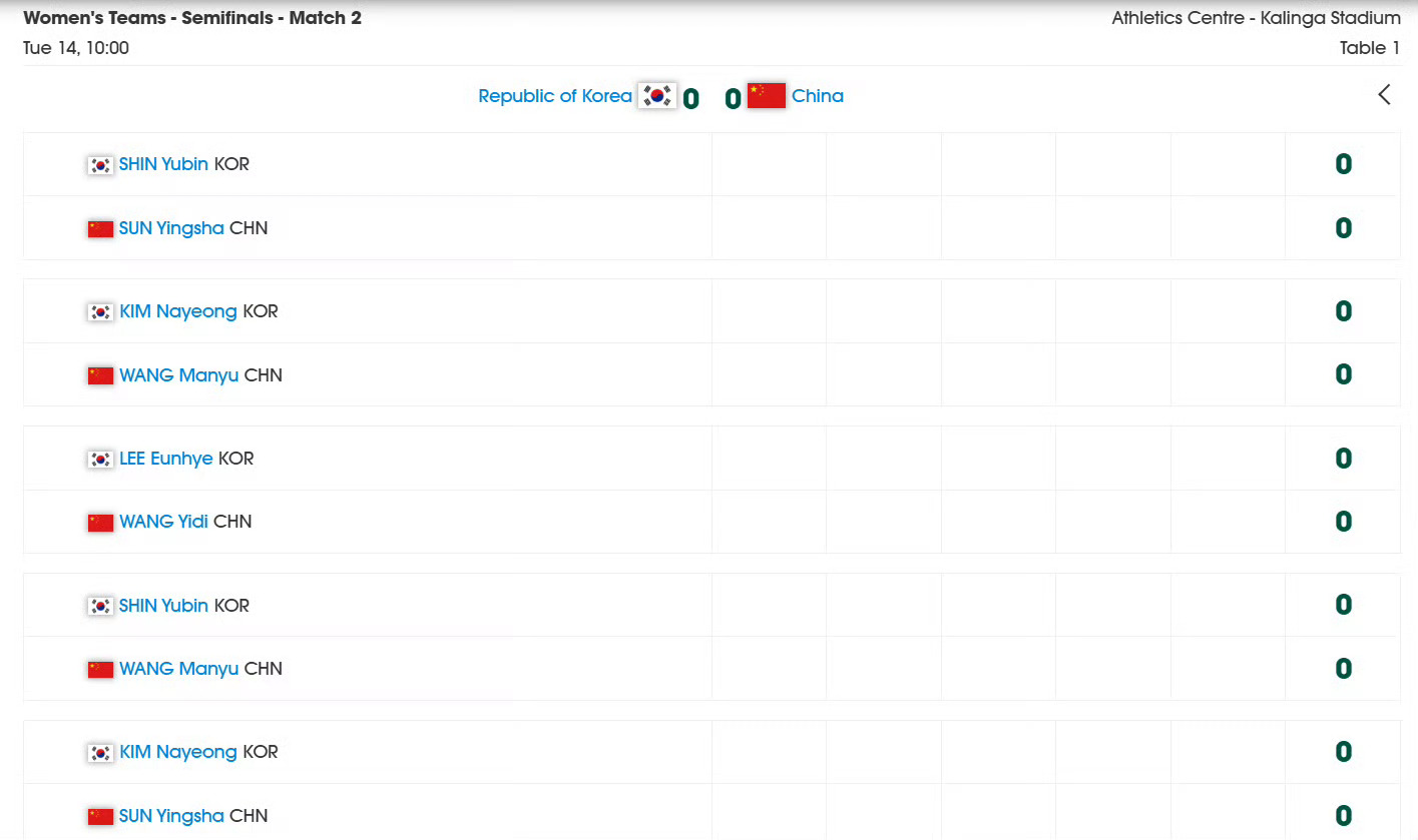 亚洲乒乓球锦标赛女团半决赛对阵: