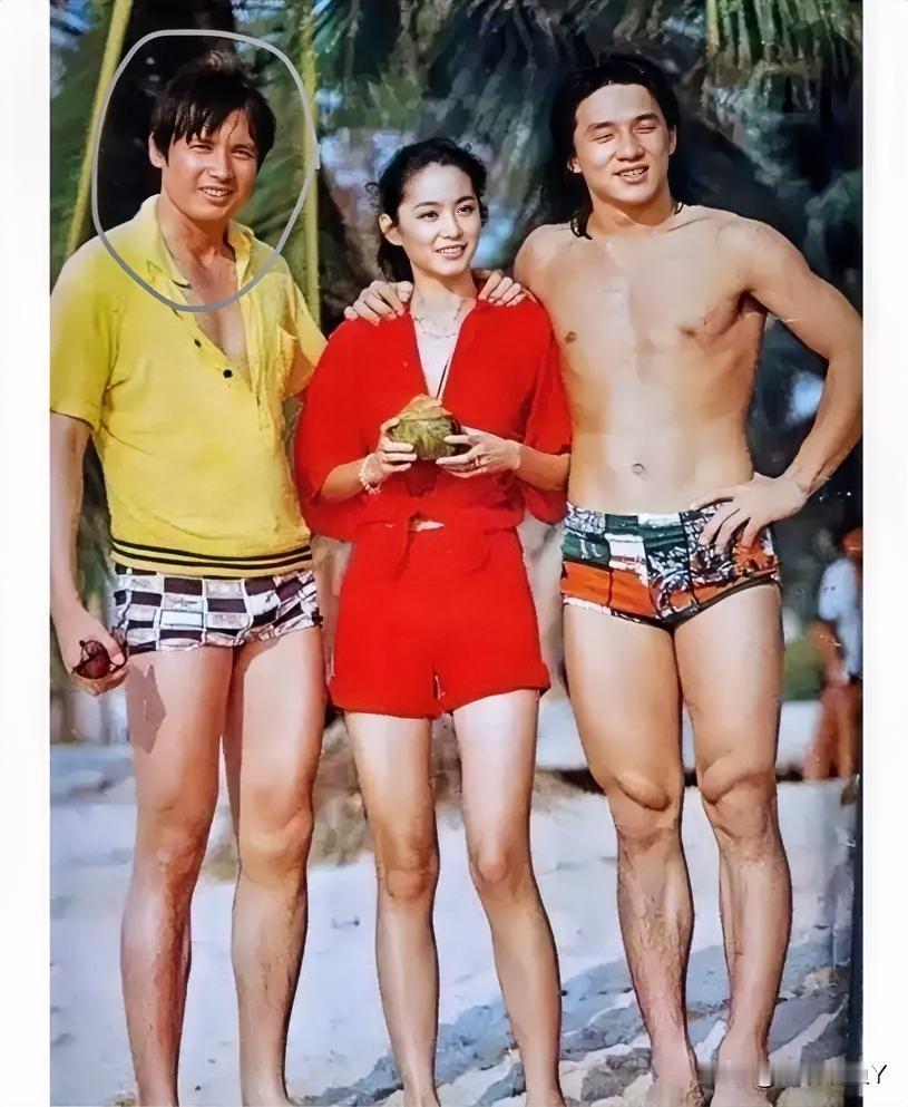 一张老照片,拍摄于上世纪七十年代末的泰国海边,右边是年轻时候的成龙大哥,中间是女神林青霞,而左边这位英俊帅气的男子是谁?有认识的么