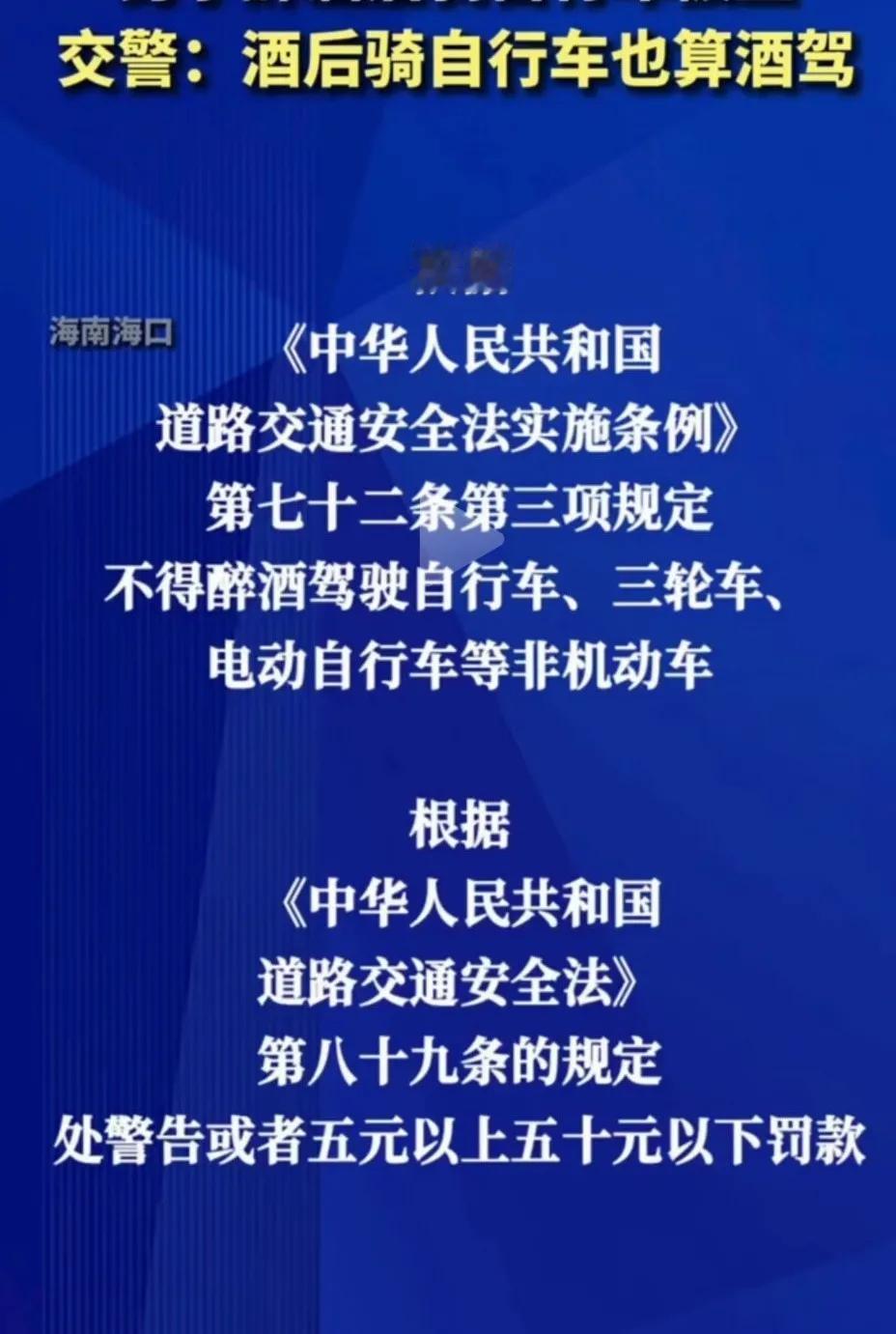 大家注意了,酒后骑自行车也算酒驾!还是政府好,为了老百姓安全也是操碎了心!!