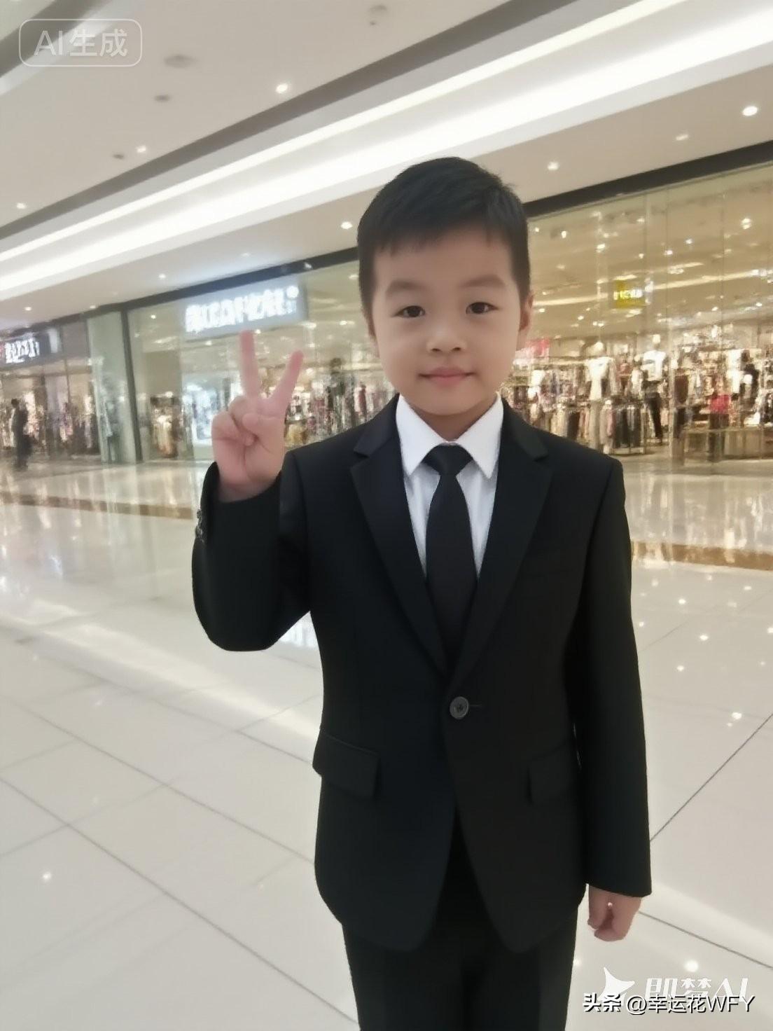 逛gai也吸睛 家人们谁懂啊!在商场撞见这枚“西装萌娃”,黑西装笔挺,小领带一系,还煞有介事地整理领带,那小大人模样把周围阿姨们的心都萌化了!一问才知道是去参加儿童礼仪活动,这气场、这穿搭,妥妥未来商界大佬小时候啊~路过的都忍不住掏出手机咔嚓,咱就是说,这么可爱的人类幼崽西装杀,谁能扛得住!