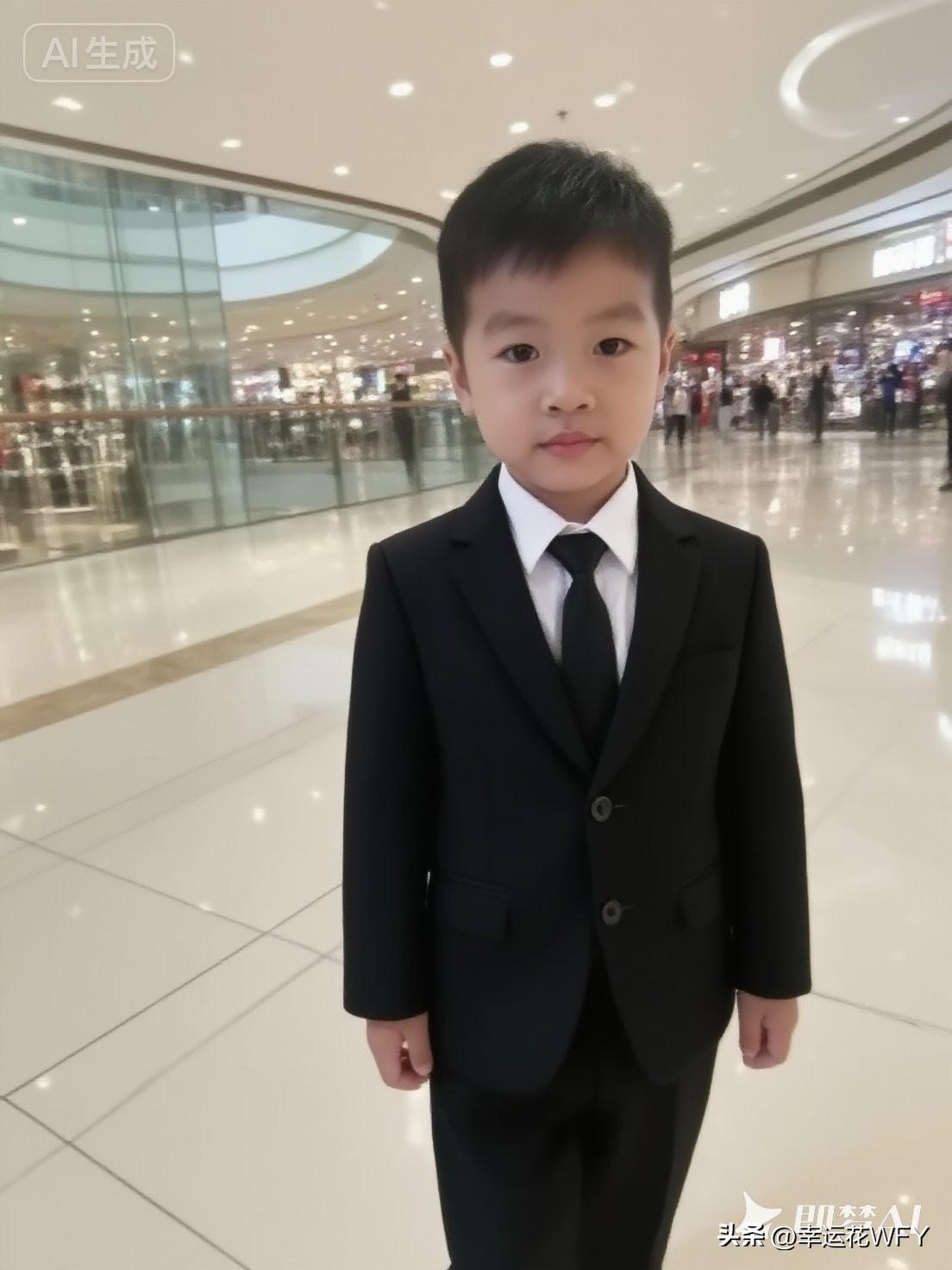 逛gai也吸睛 家人们谁懂啊!在商场撞见这枚“西装萌娃”,黑西装笔挺,小领带一系