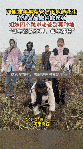 “得寸进尺”!河南商丘,四姐妹年年帮助父母下地薅花生,本想着自己多干点父母就少干