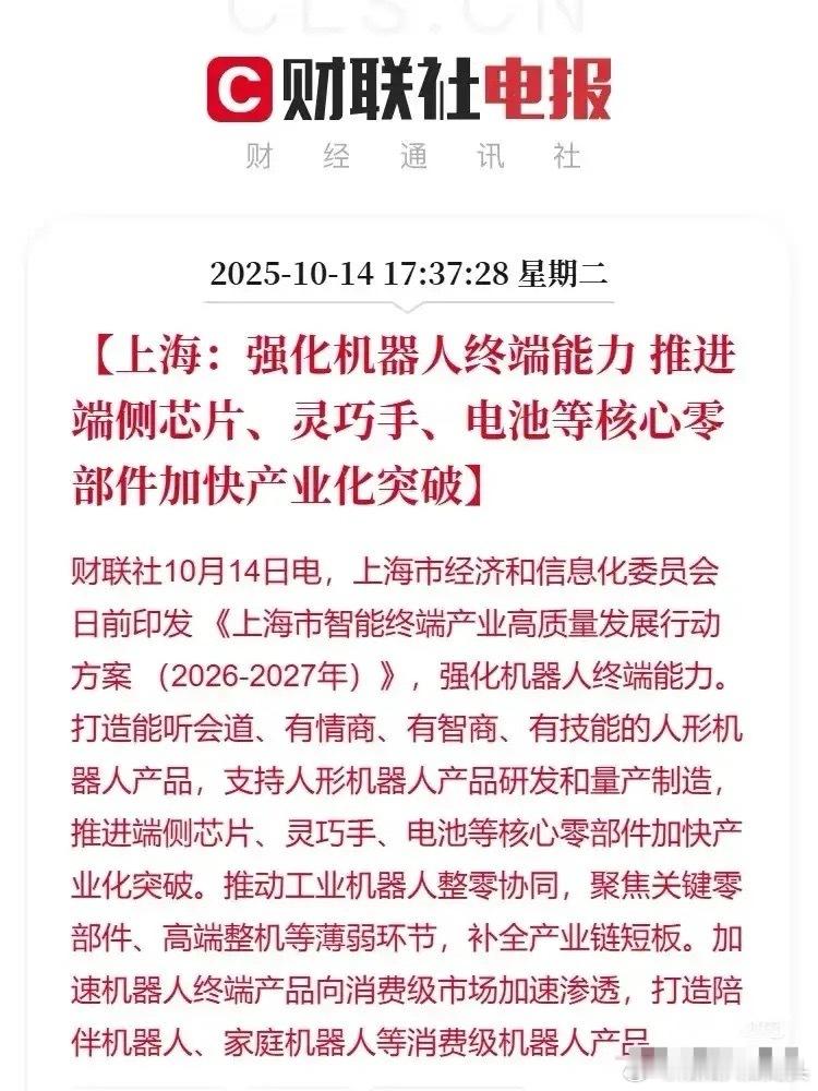 重磅发布,科技赛道迎来政策利好!(1)人形机器人概念:上海发布智能终端产业高质量