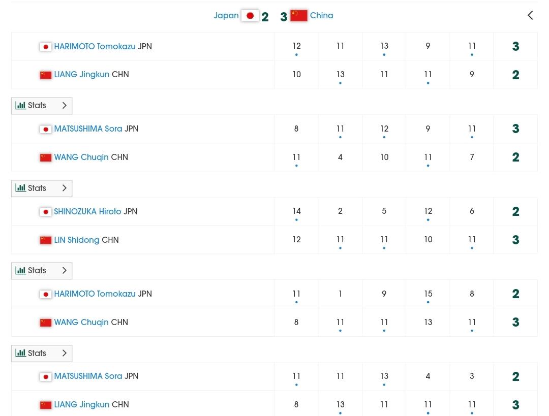 从0比2落后到3比2逆转,国乒男团实现超级大逆转日本晋级亚锦赛决赛! 在今天凌晨结束的第28届乒乓球亚洲锦标赛男团半决赛,中国男团以总比分3比2逆转战胜了日本男团,艰难晋级决赛! 国乒派出了王楚钦、梁靖崑、林诗栋三人,分别为一、二、三单。日本派出张本智和、松岛辉空和筱塚大登三人! 首盘,梁靖崑以2比3不敌张本智和,国乒大比分0比1落后; 第二盘,王楚钦2比3不敌松岛辉空,国乒大比分0比2落后; 第三盘,林诗栋顶住压力,以3比2逆转筱塚大登,将国乒从悬崖边拉了回来,国乒追回一分,大比分1比2落后; 第四盘,双方一单对决,经过五局激战,王楚钦3比2战胜张本智和,中日双方大比分战平; 第五盘,梁靖崑以3比2逆转战胜了松岛辉空,国乒以总比分3比2实现了超级大逆转,晋级男团决赛! 本场比赛,最终的结果是好的,恭喜国乒晋级决赛,决赛对阵中国香港队还是优势很大的,与日本的半决赛相当于决赛的提前上演。但本场比赛也暴露了很多问题,希望在接下来的时间继续加油! 国乒亚洲锦标赛