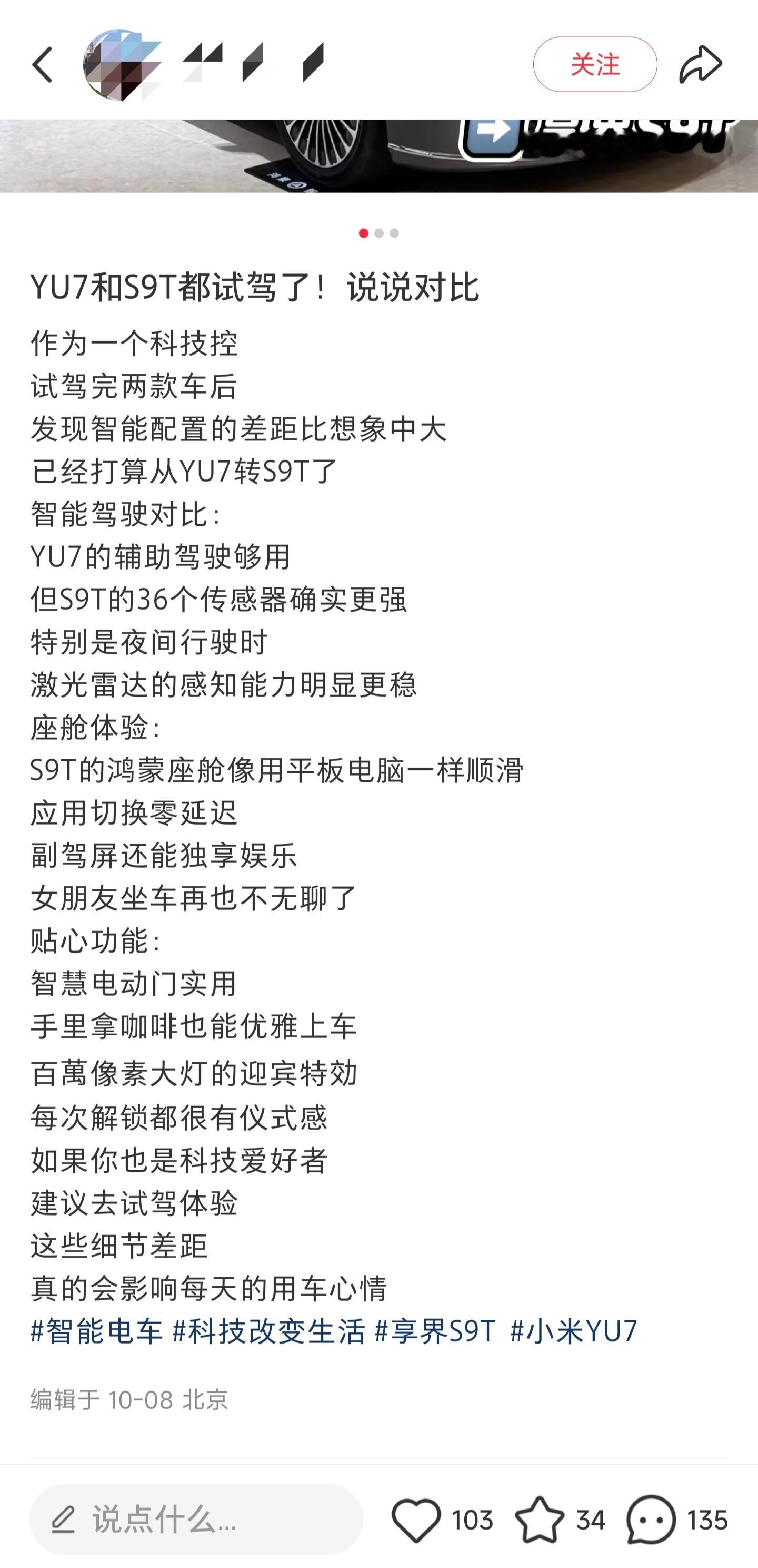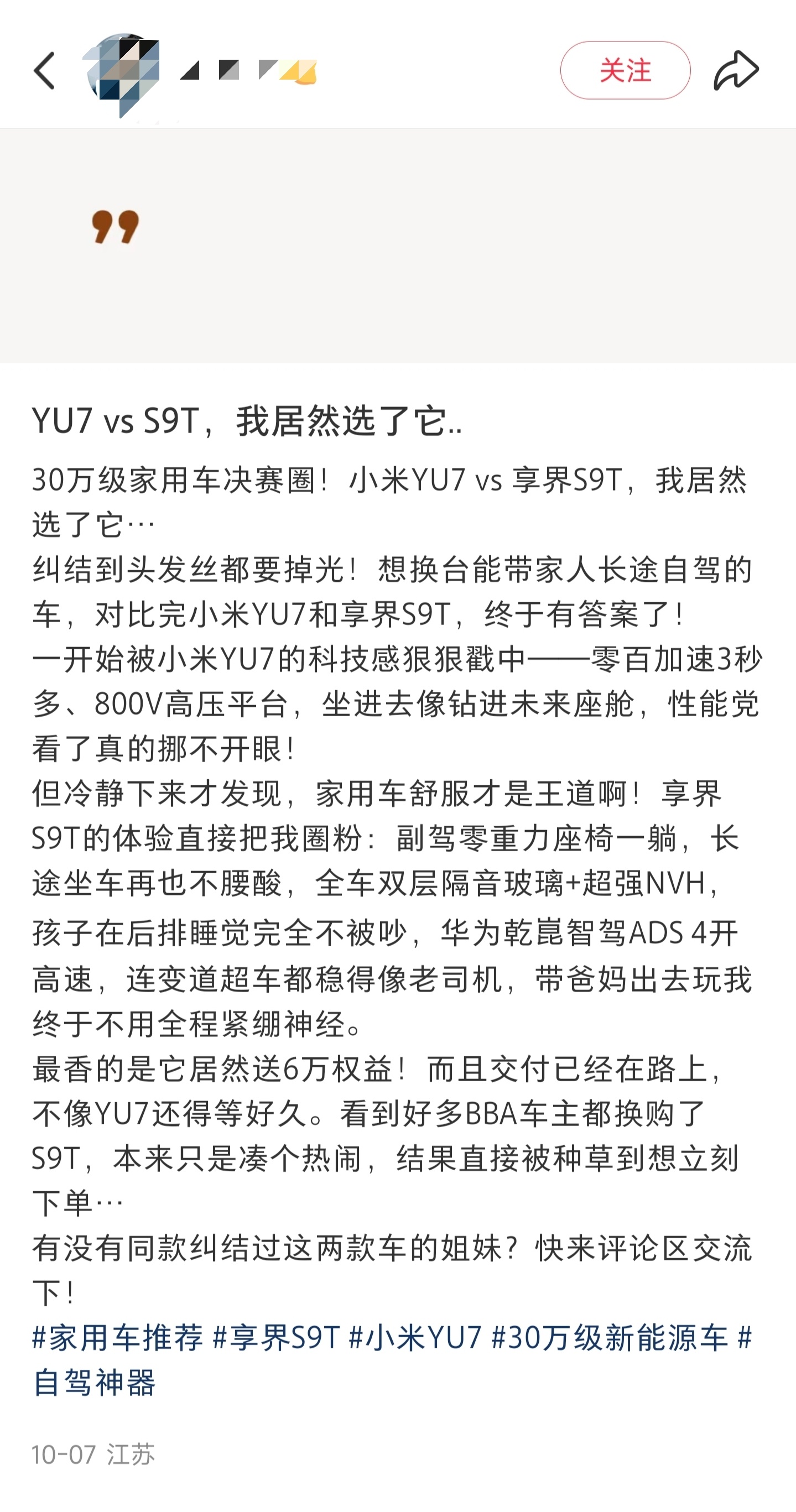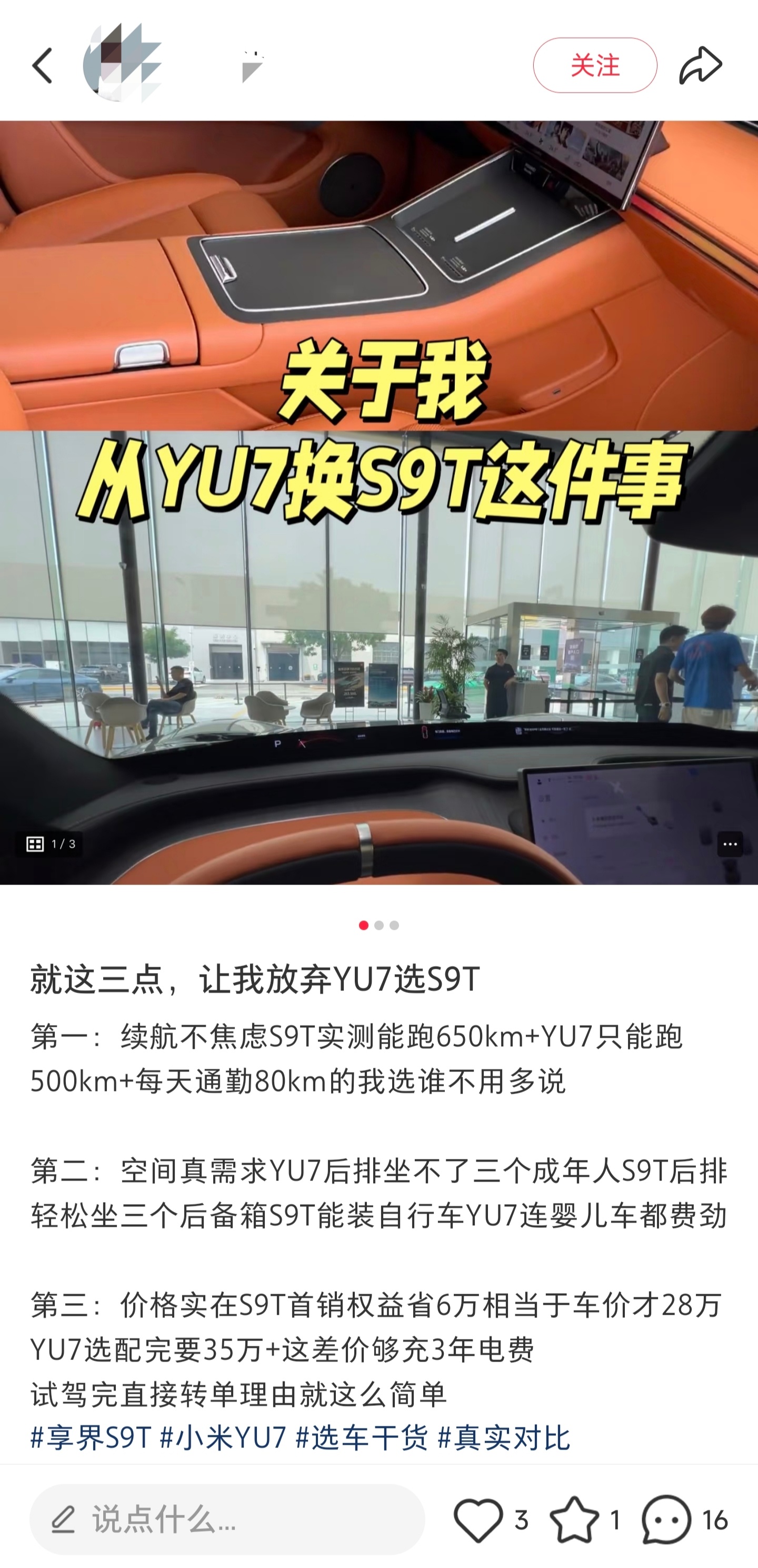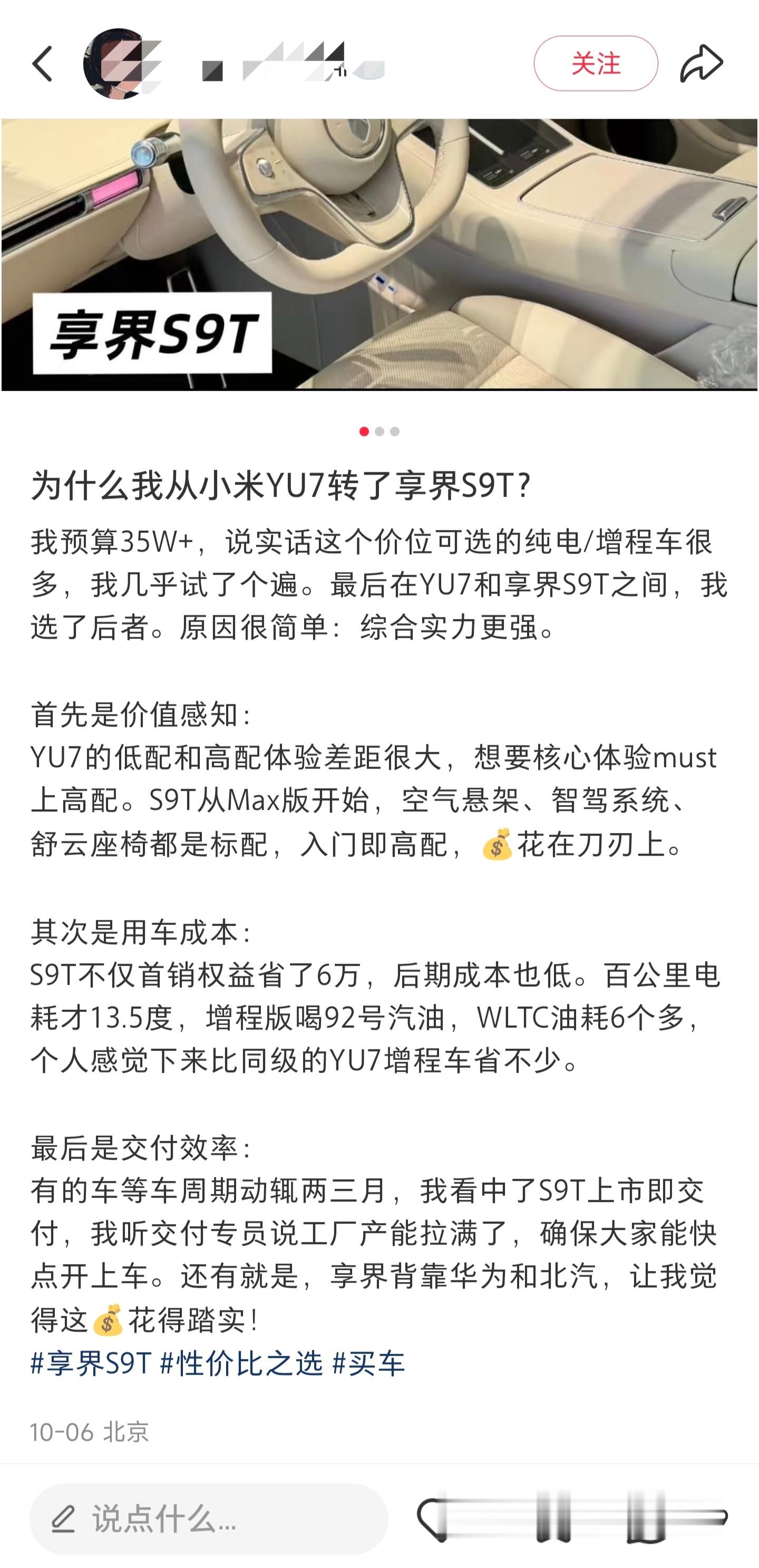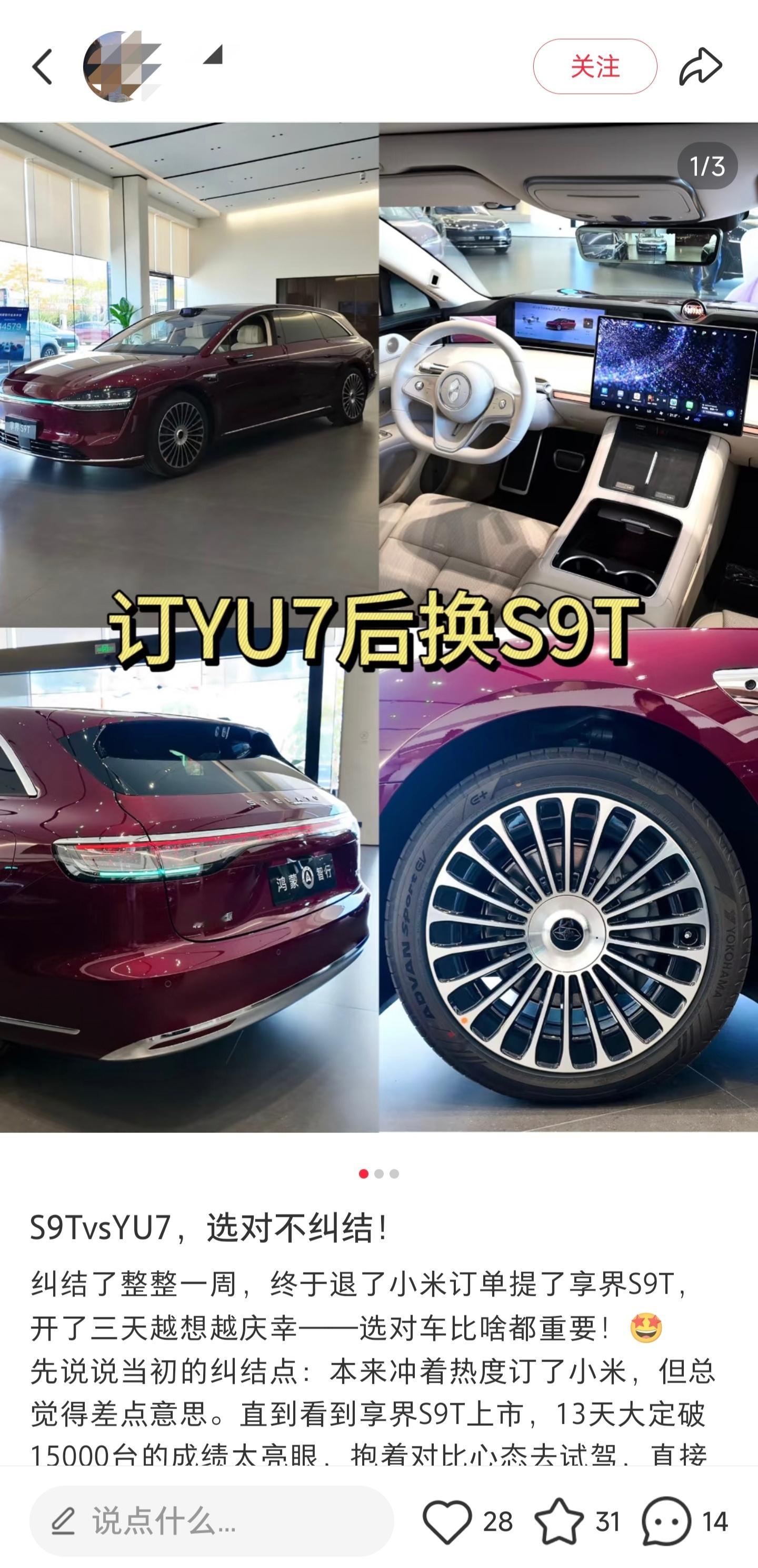 夸S9T的时候,还不忘踩一脚YU7[憧憬]