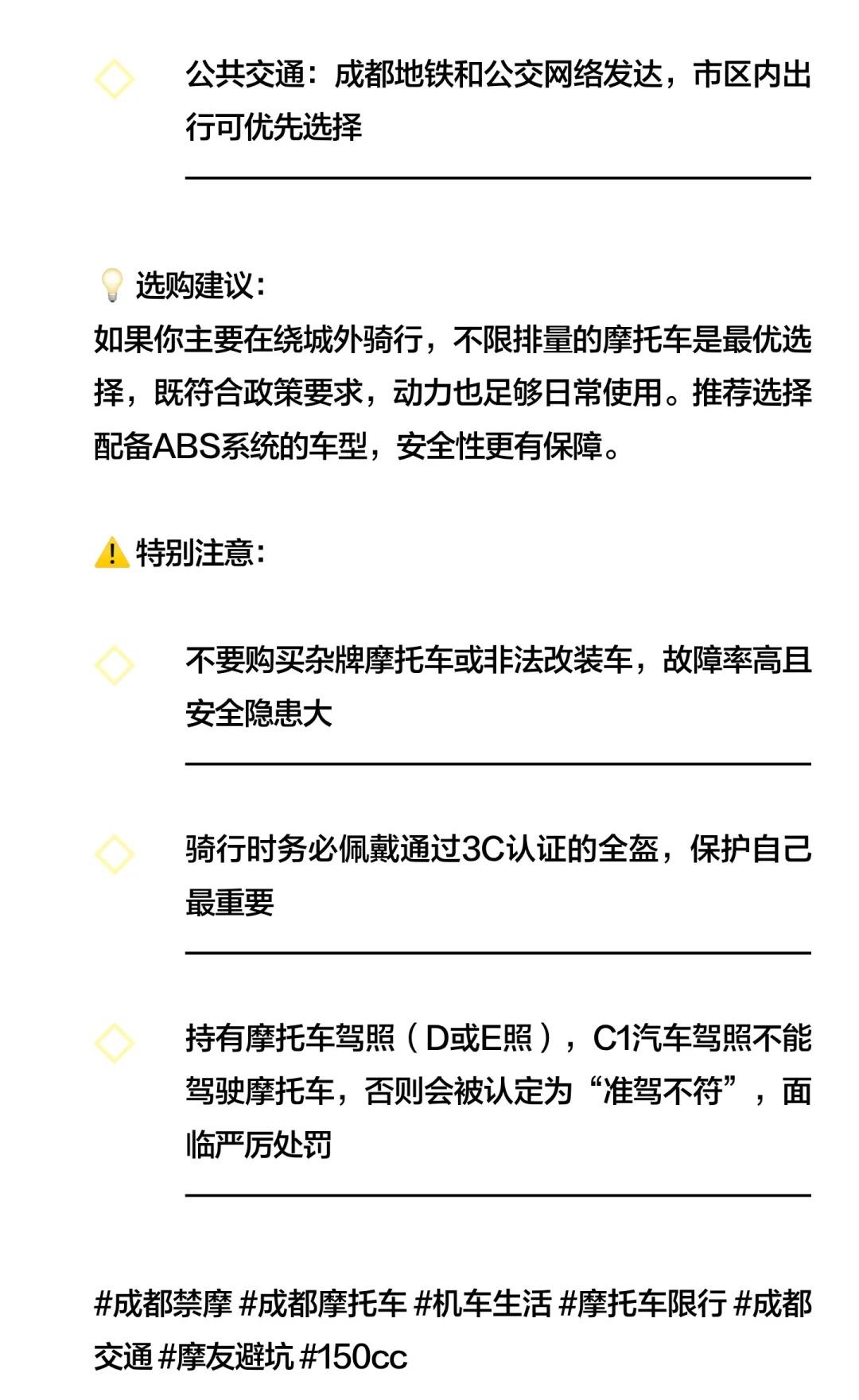 成都骑摩托!一不小心一菜一汤 最近在成都机车圈里,讨论最热烈的话题就是成都的“禁摩令”再次延续到了2028年8月14日!🚫 不少摩友抱着很快就能骑进绕城的小希望,这下彻底破灭了。为了让大家不踩坑、不罚款,我整理了这份成都摩托车排量红线指南,收藏这一篇就够啦!成都禁摩 成都摩托车 机车生活 摩托车限行 成都交通 摩友避坑 150cc以上禁入