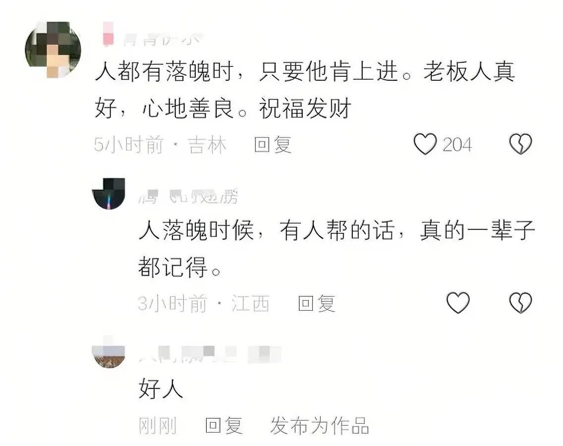 广州小伙蓬头垢面进餐馆 兜里没钱却开口要饭 老板看他可怜,竟连续3次免费送饭!谁能想到,两个月后这小伙穿着笔挺工装回来,递烟时掌心还沾着新洗的肥皂香。他硬塞给老板100元现金,说:"打工第一个月工资,必须还您!"老板娘瞅着他袖口磨破却洗得发白的衬衫,忽然红了眼眶——原来当初那句"好好上班,别辜负自己",真的成了这孩子的人生转机。 这事最戳人的不是知恩图报,而是你永远不知道,一次微不足道的善意,能在别人心里种下多坚韧的种子。落魄时肯弯下腰吃饭的人,站起来往往更懂得把路走直。那些在泥里打滚却不闭眼的灵魂,早晚会等到属于自己的光。 你身边有过这样"低谷翻盘"的故事吗?当陌生人向你求助时,你愿意做那个递出第一碗饭的人吗?