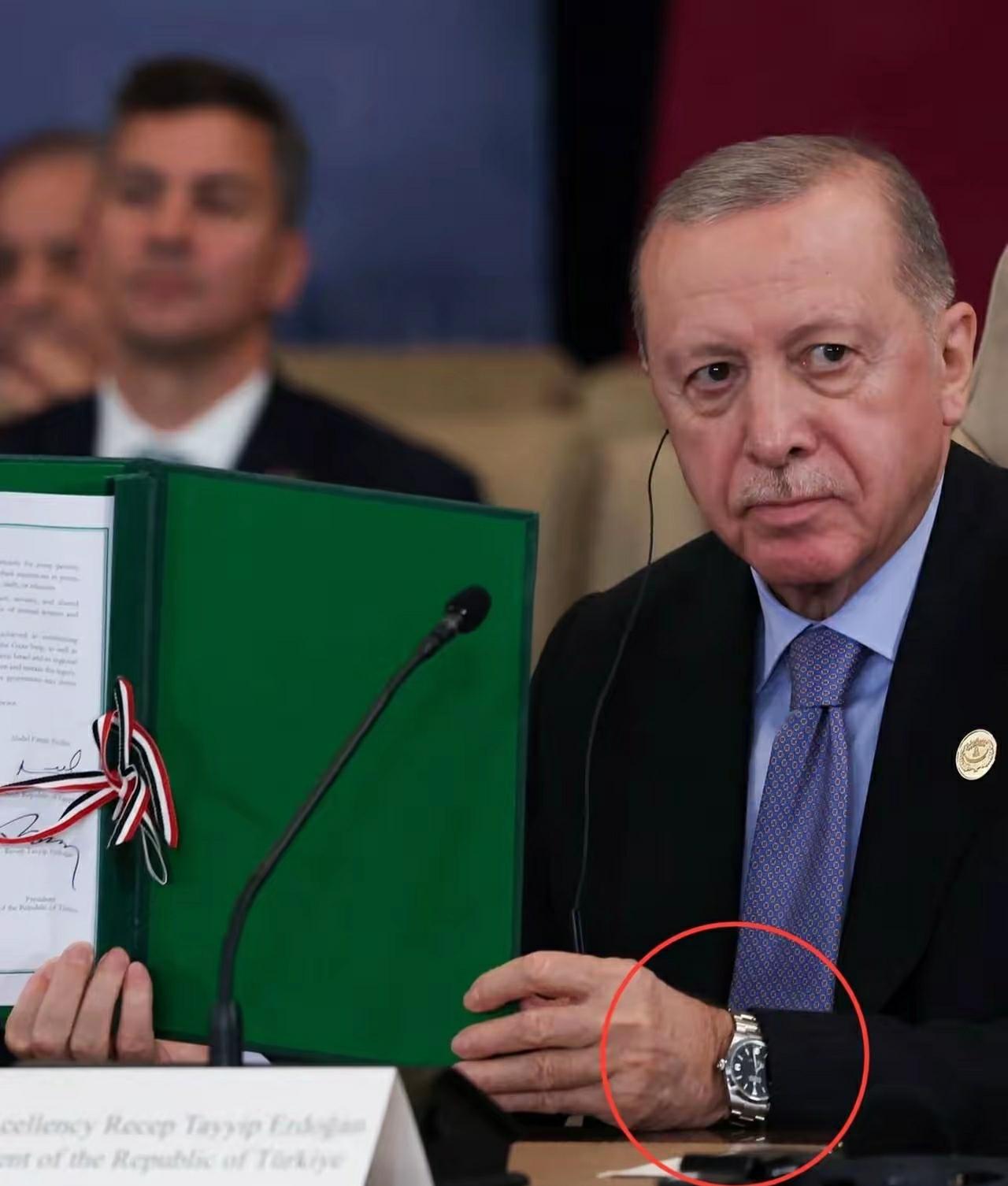 看看土耳其总统埃尔多安戴的什么表?网友说他戴的是劳力士表,价值上百万美元。 以埃尔多安的年薪,他买得起这个表吗? 外媒多次揭发埃尔多安跟他包头巾老婆生活豪华,他老婆喝的茶叶几万元一斤,他老婆经常带着保镖去国外购物,把奢侈品店的门封着,不让其他顾客进。 埃尔多安统治土耳其已经20多年了,连特朗普都说埃尔多安特别明白操纵选举。