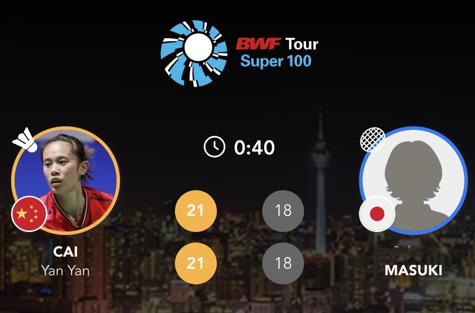 蔡炎炎🇨🇳 21-18、21-18 🇯🇵舛木樱
