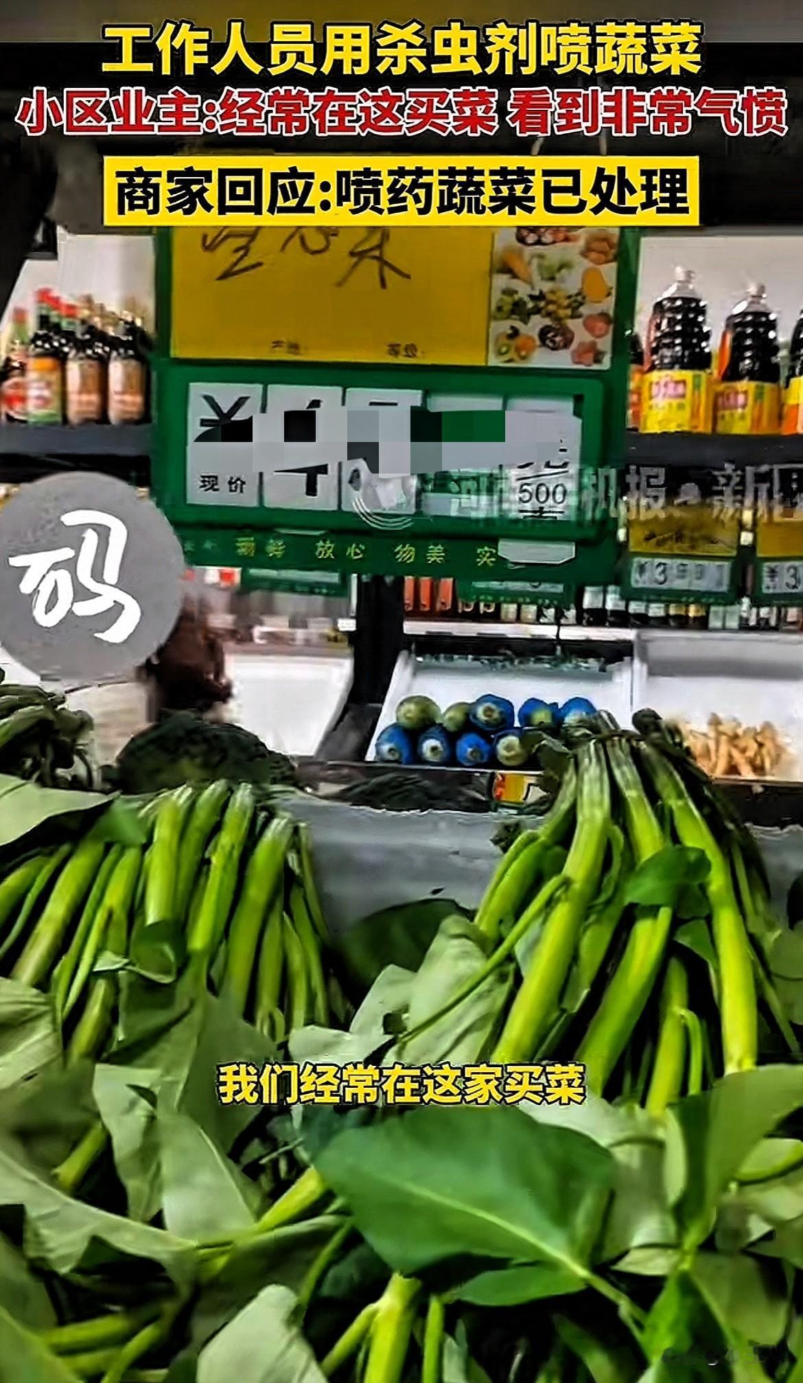 太缺德了!四川成都,一超市工作人员居然用杀虫剂喷洒蔬菜,幸亏被人发现,这样的蔬菜谁还敢吃,被发现后,老板却说:“那是轻微的杀虫剂,那个是无毒的,以后不这样了!”然而这下网友炸锅了! 真是防不胜防啊!这也太没良心了,你说无毒,让超市老板自己先尝尝再说,杀虫剂和食品就不能混放,更不能混用,这点常识都不知道吗? 我觉得,现在就是生意再卷,也不能为了把利益最大化,把道德良知抛弃,所谓人在做,天在看,这样的超市不垮,才没天理! 超市员工这种行为,必须严惩,保证食品蔬菜安全刻不容缓! 对于店员这种行为,大家怎么看呢? (信息来源:河南都市频道)