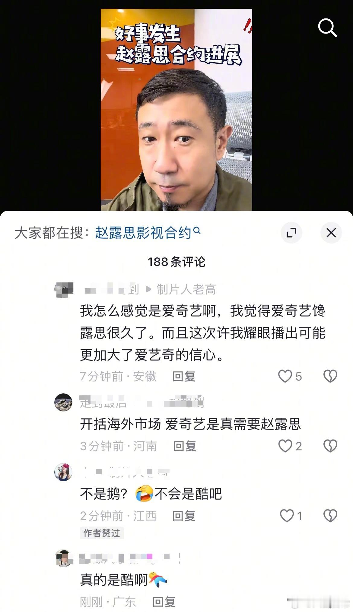 🍉有制片人说赵露思在不远的将来就能恢复自由身,而且可能会和平台成立合作公司,平台继续买股赵露思。这个平台大几率是优酷